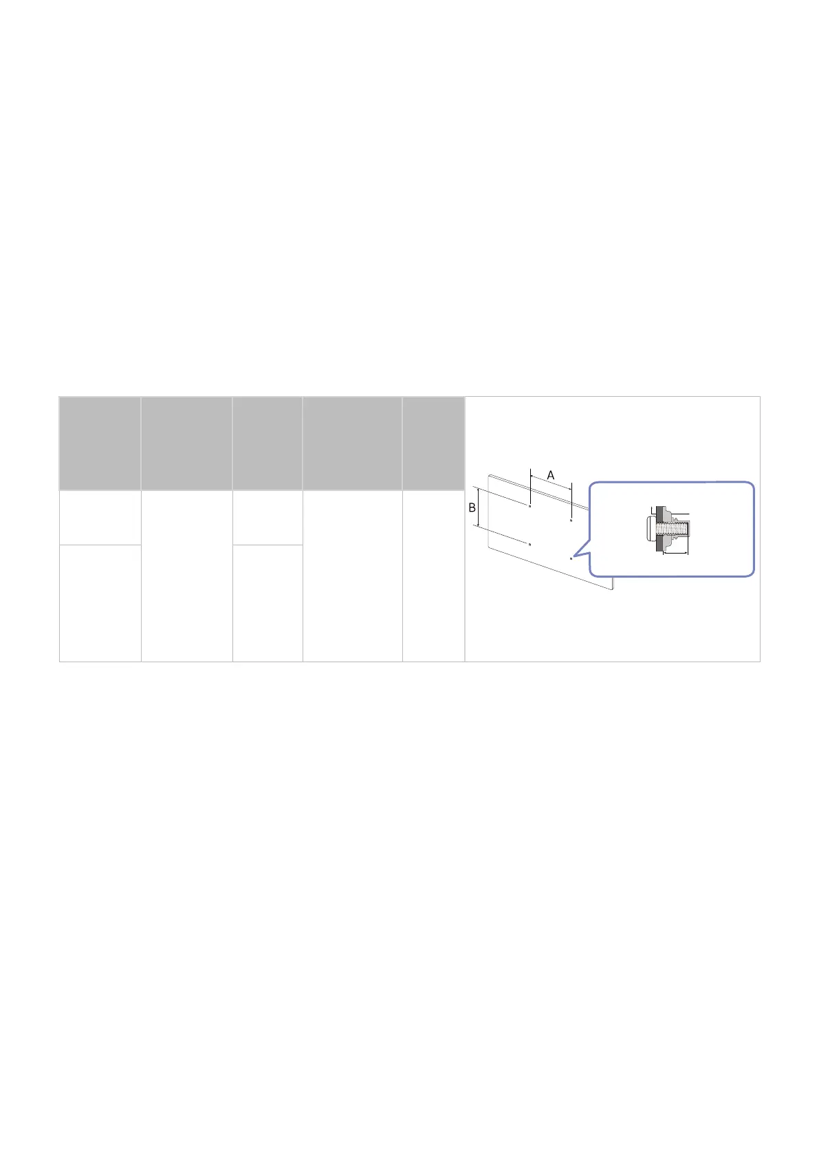 ● Voor wandmontages die niet voldoen aan de standaard VESA-schroefspecificaties, kan de lengte van de schroeven variëren