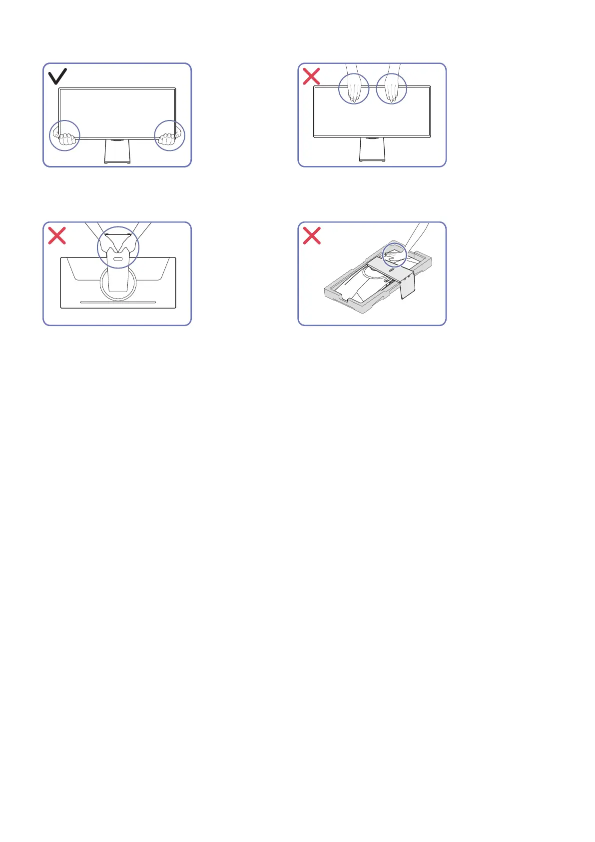 ● Do not hold the screen when moving the product.