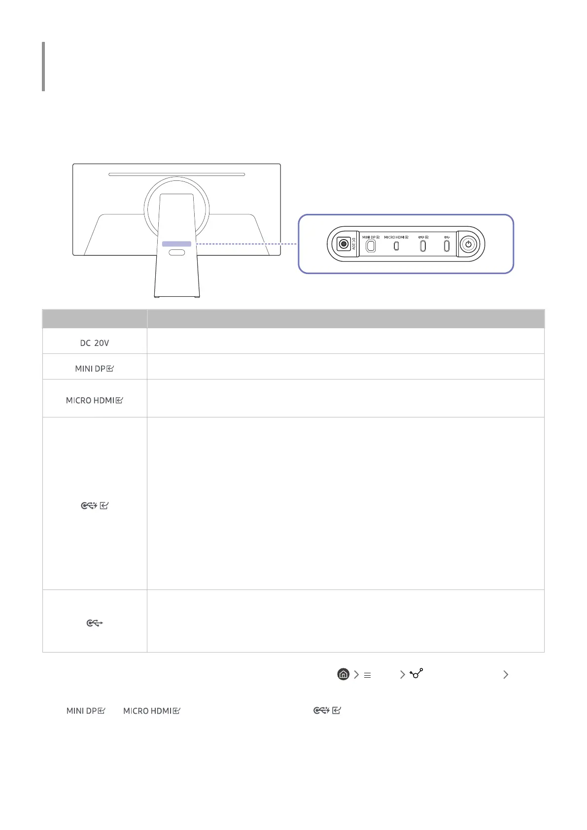 ● Connects to a source device using a USB Type-C cable. When connecting a USB