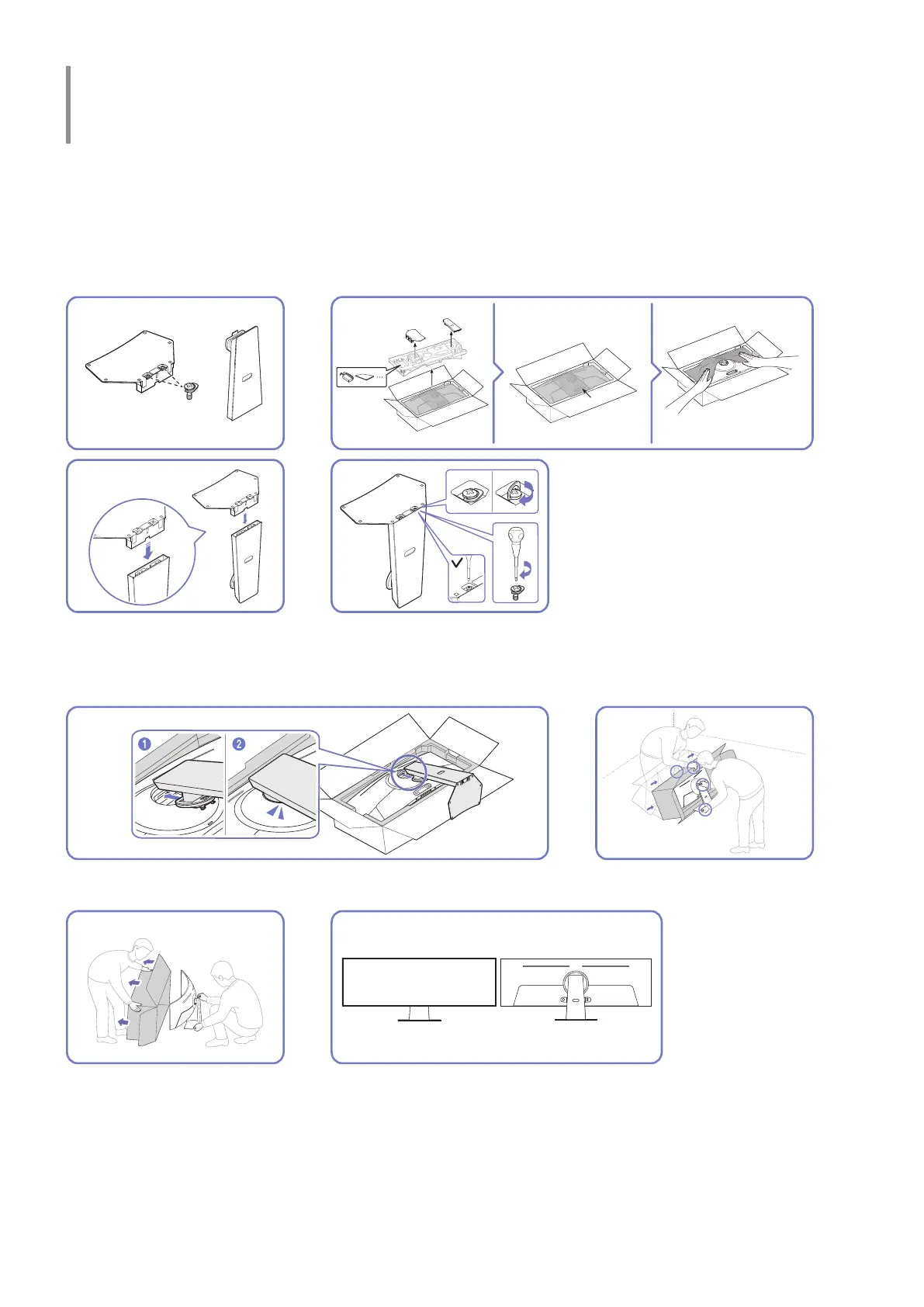 " Before assembling the product, place the product down on a flat and stable surface so that the screen is facing