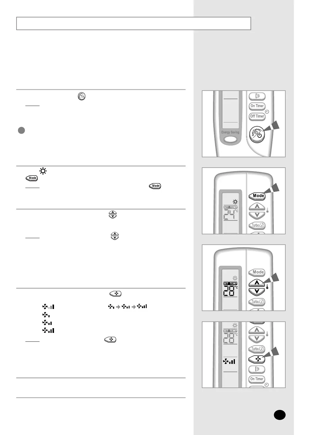 4 Select the fan speed by pressing the button one or more times