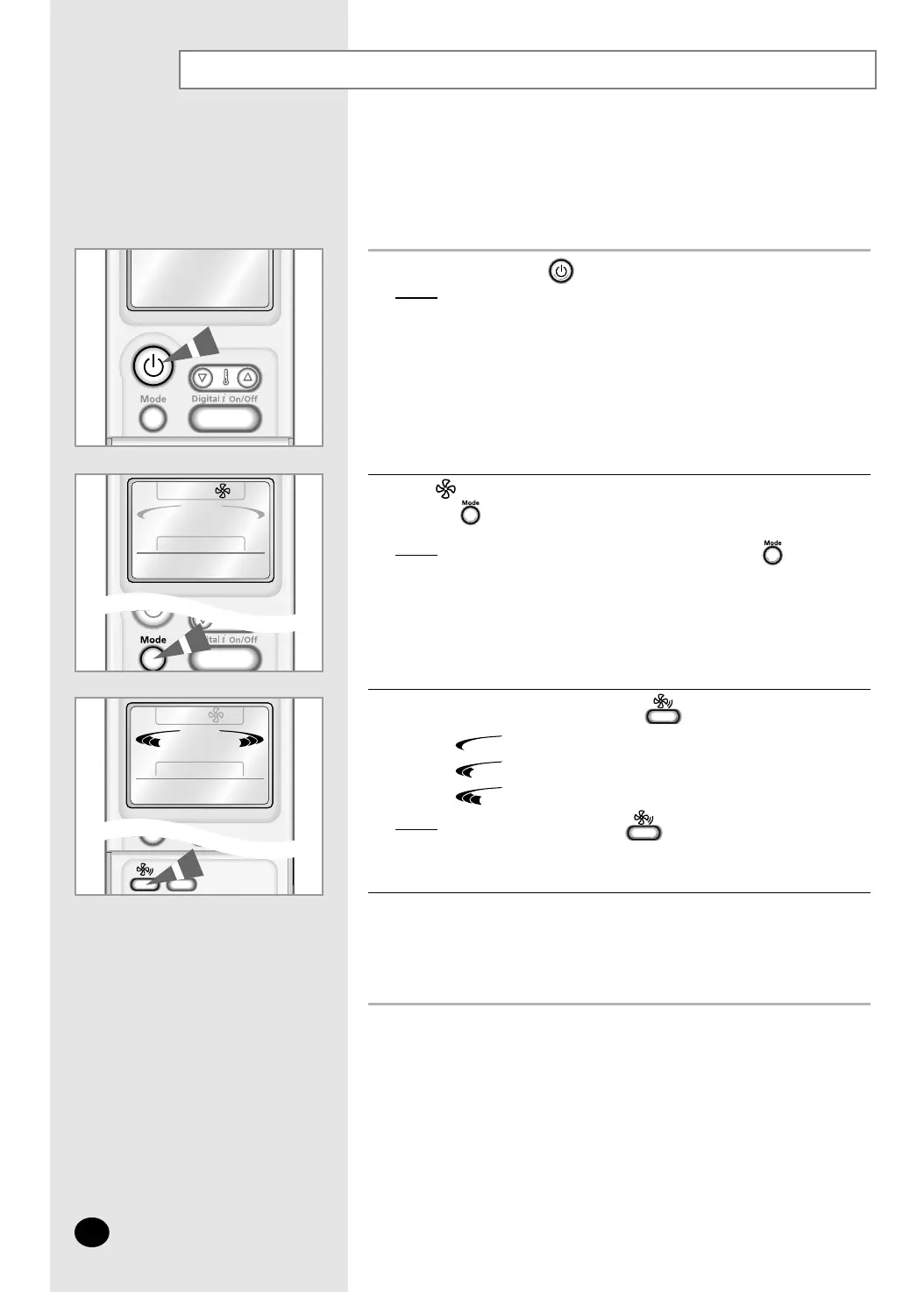 3 Select the fan speed by pressing the button one or more times