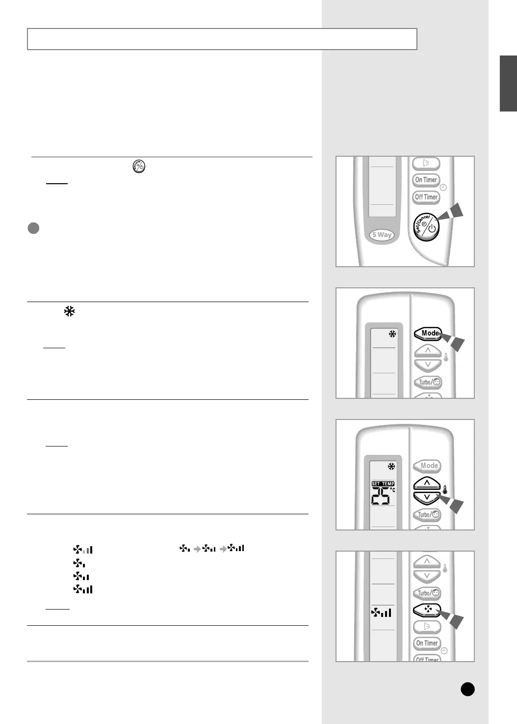 Select the fan speed by pressing the FAN button one or more times