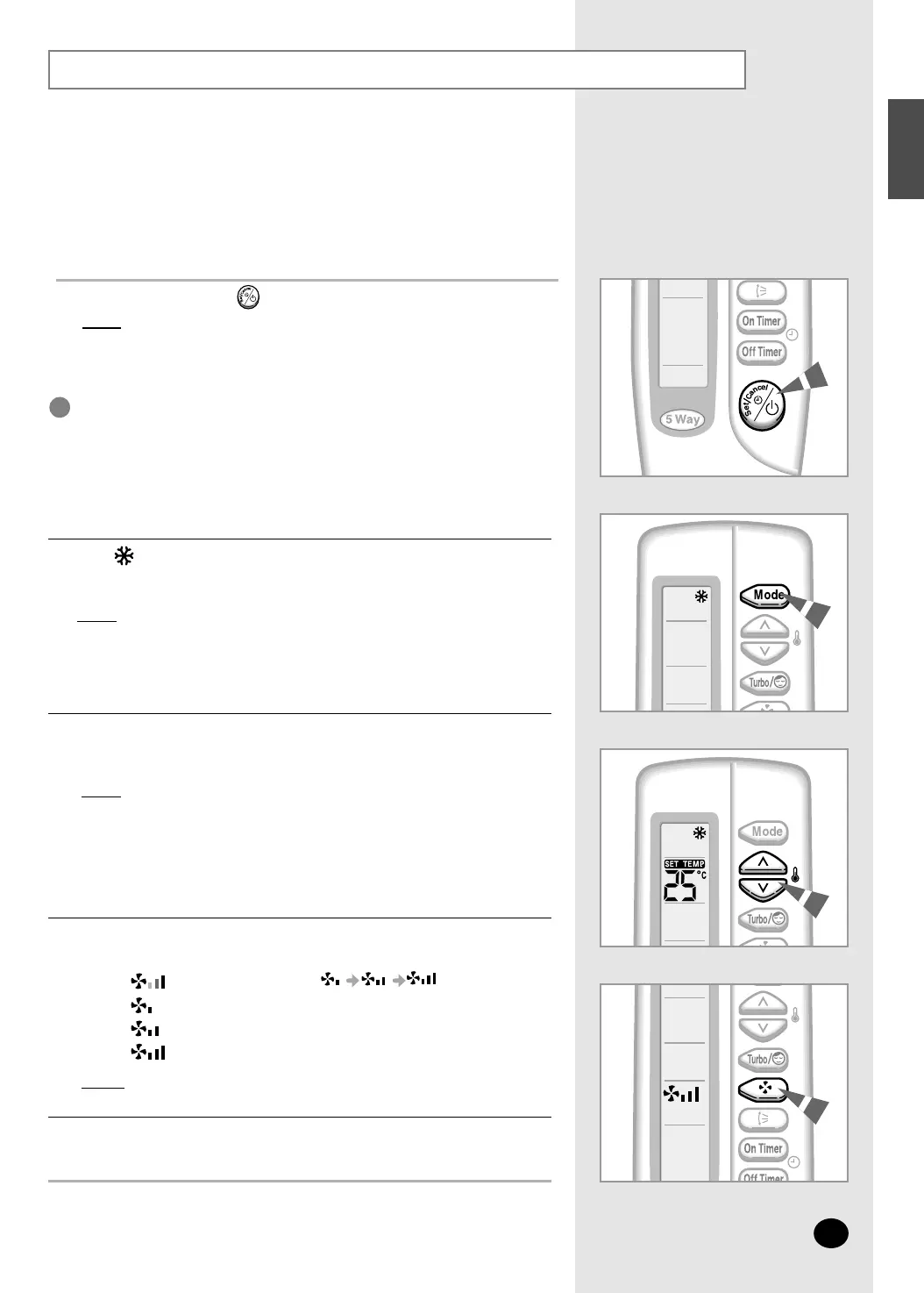 Select the fan speed by pressing the FAN button one or more times