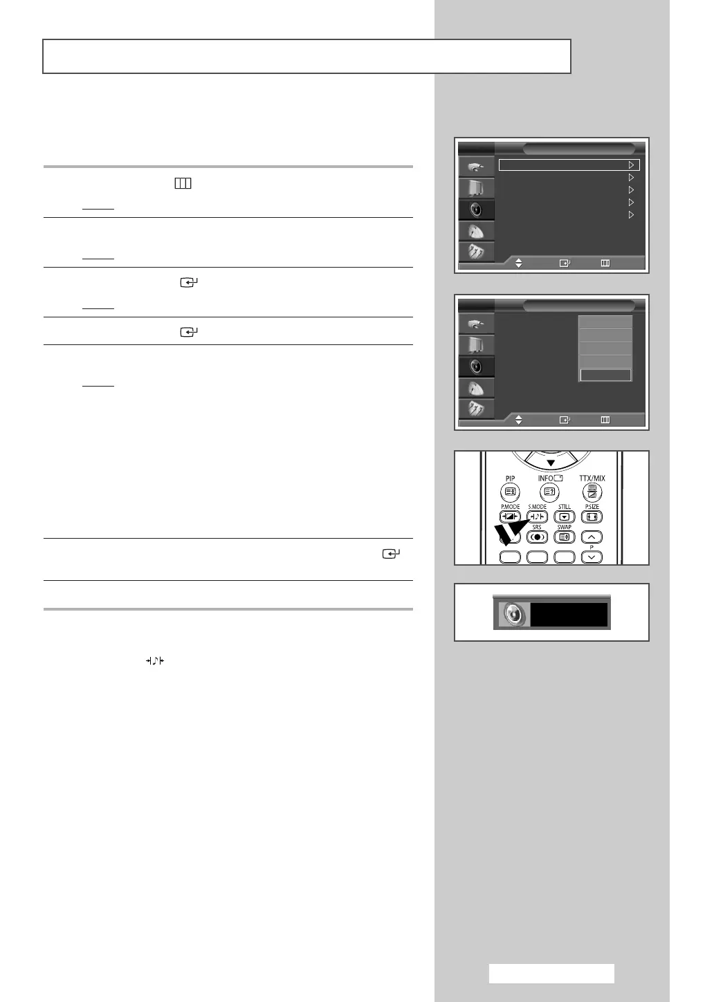 S.MODE (: Sound Mode) button on the remote control.