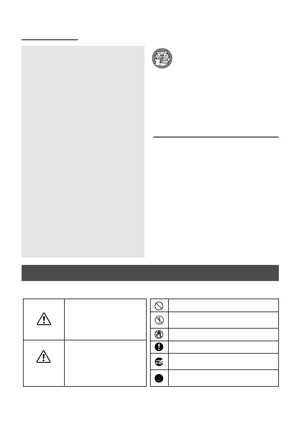These warnings are to prevent injury to users or other persons. Please observe them.