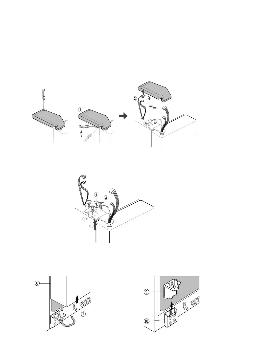 take off the upper hinge (➄) along the arrow (➅). Take care when disassembling the