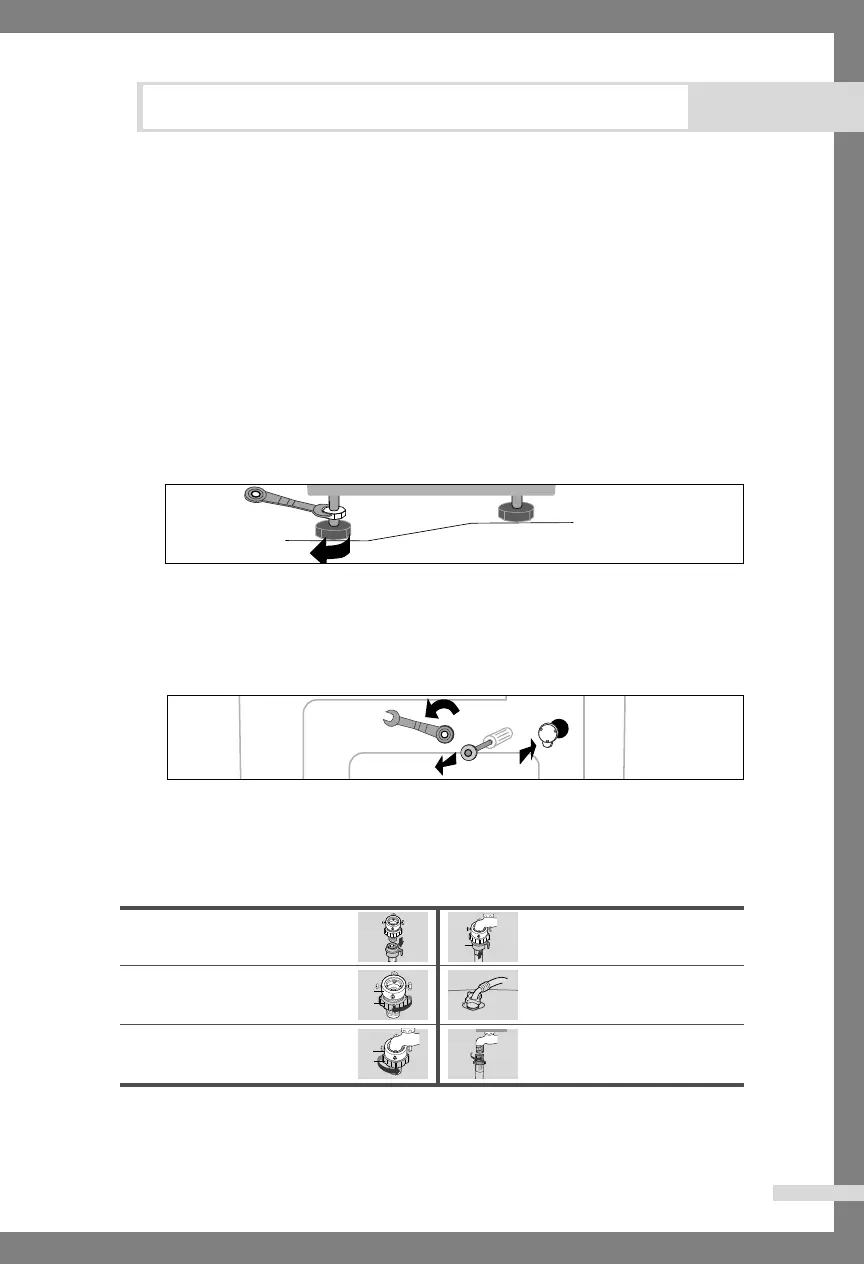If the floor is uneven, adjust the feet (do not insert pieces of wood or any other objects under