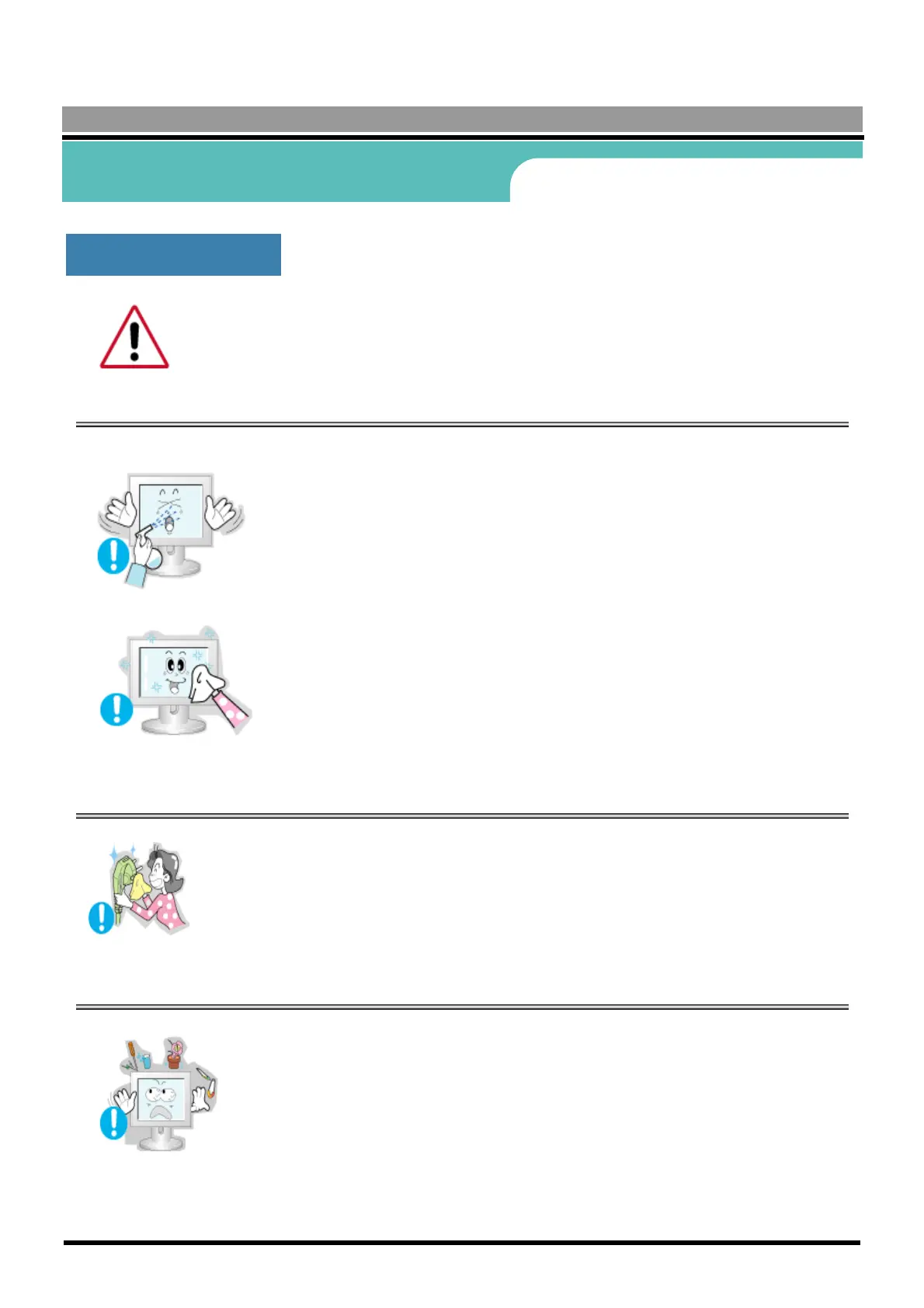 When cleaning the monitor case or the surface of the TFT-LCD, wipe with a slightly