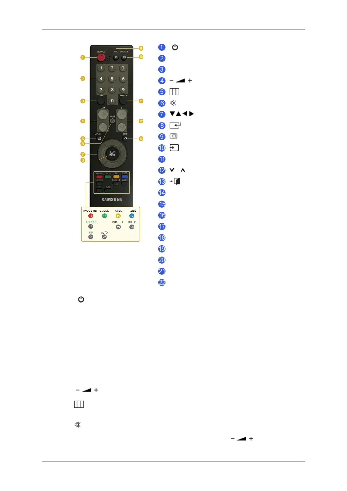 2. Number button Selects TV channels in the TV mode.Used to change channels