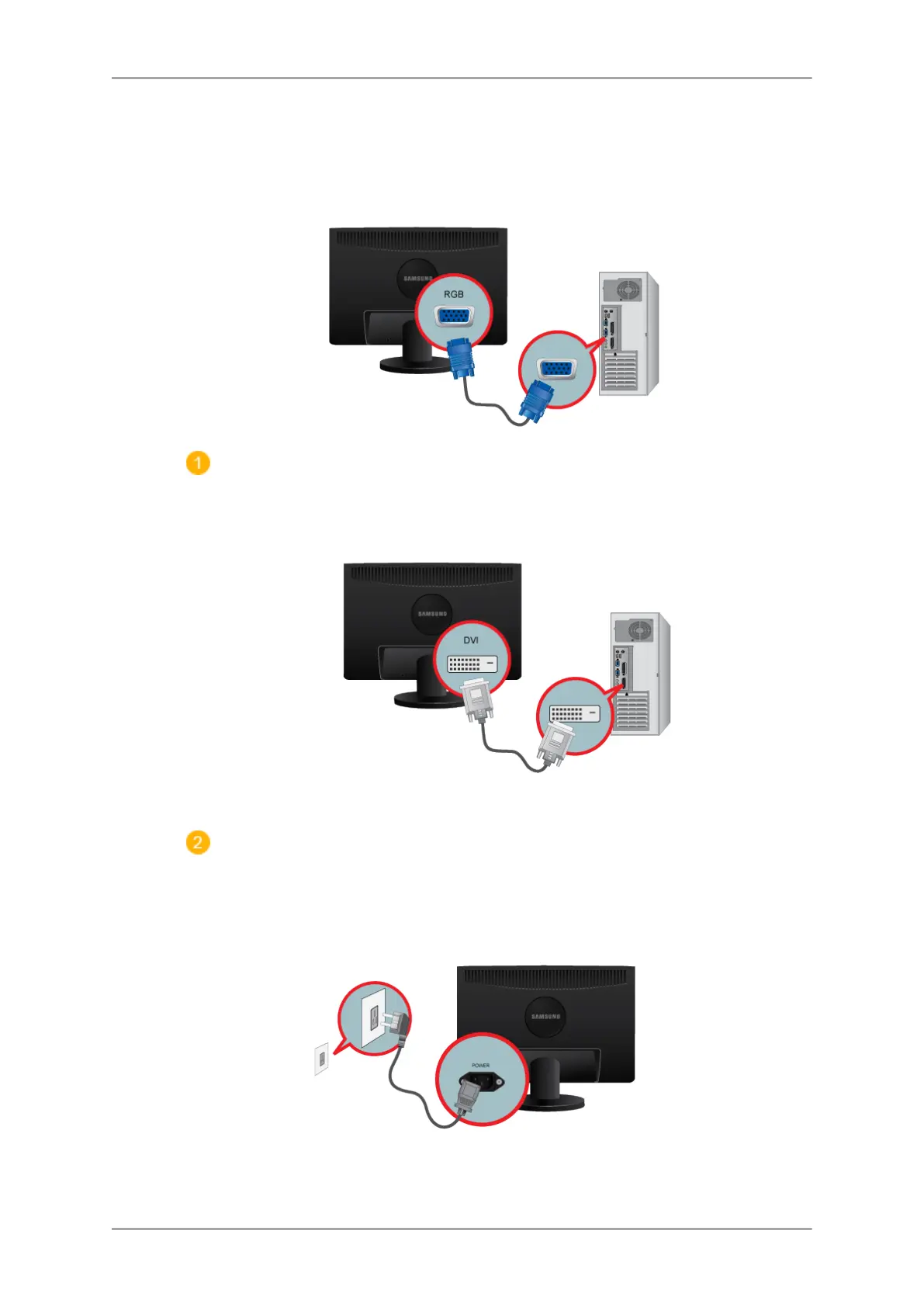 • Connect the signal cable to the 15-pin, D-sub port on the back of your monitor.