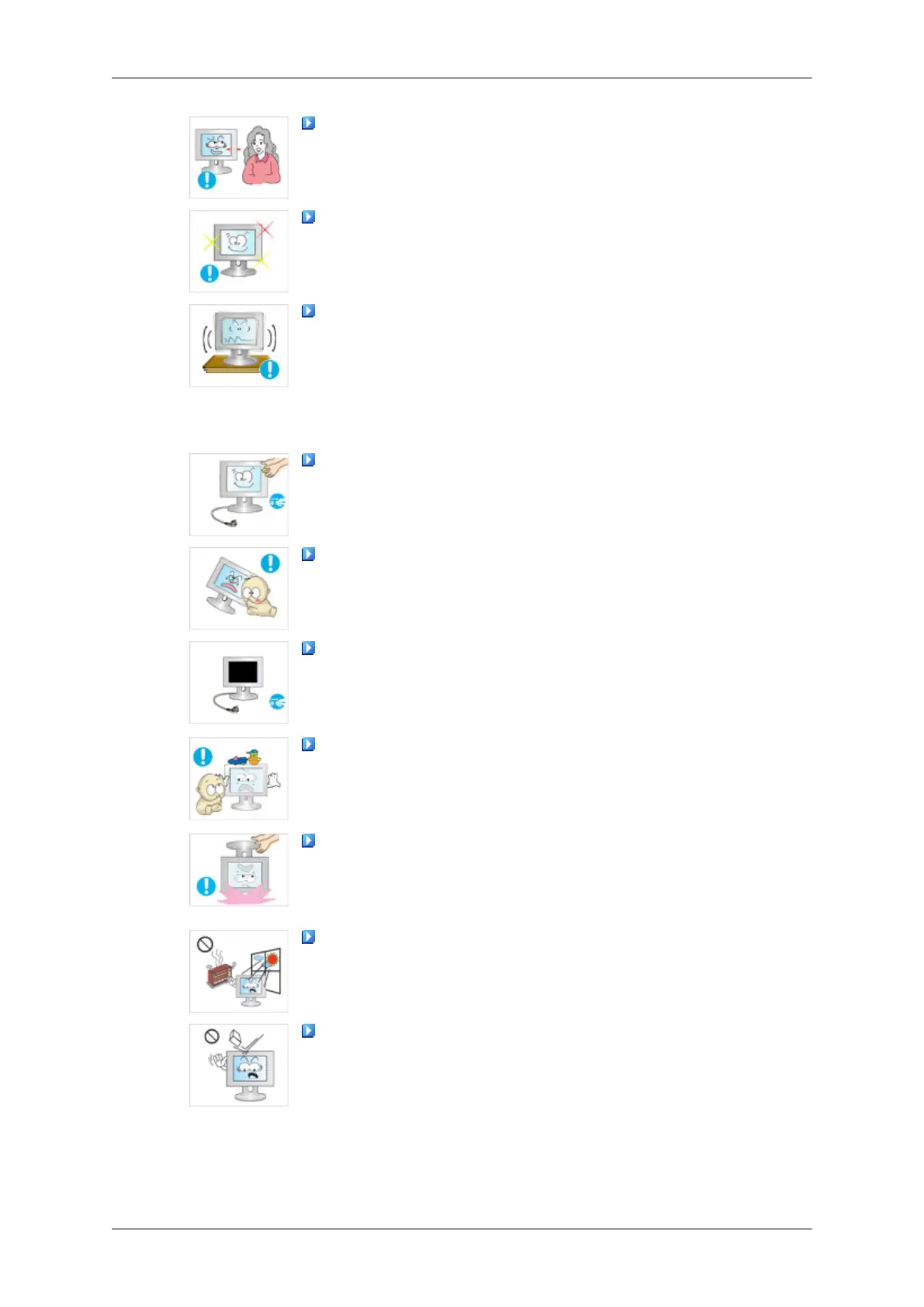 Do not drop any objects onto the product or cause any impact to the