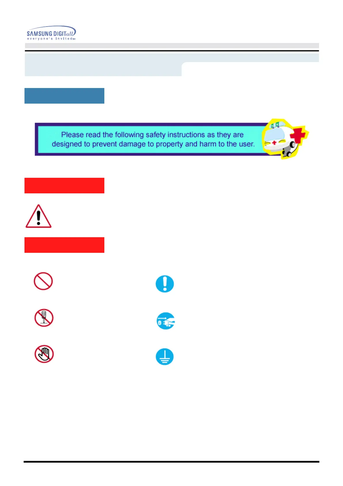 Do not touch Grounding to prevent an electric shock