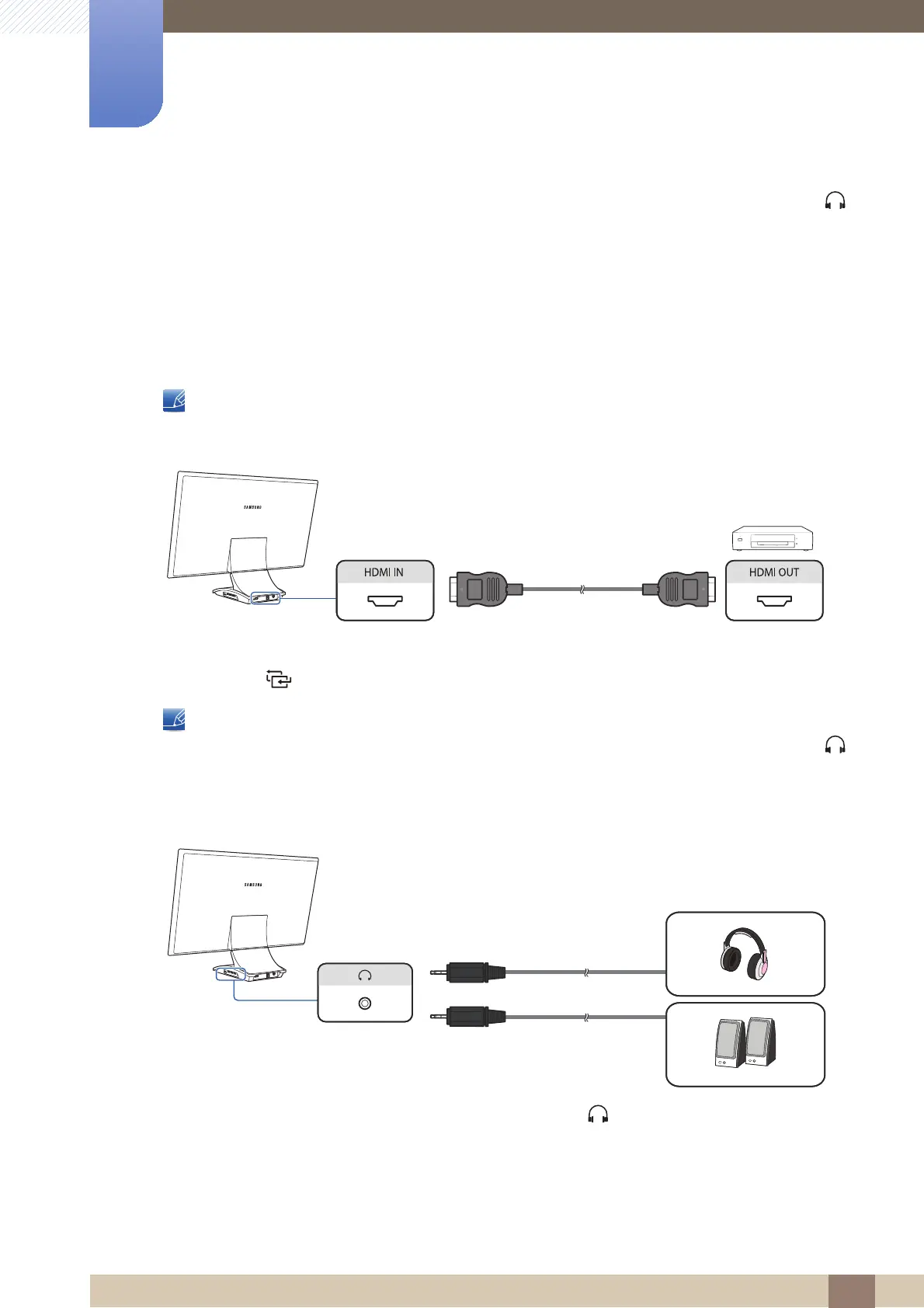 z Connect an audio output device (headphones, etc.) to the [ ] port on the product.