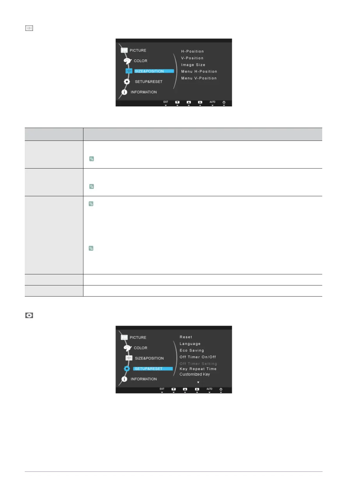 Menu H-Position You can adjust the horizontal position of the OSD.