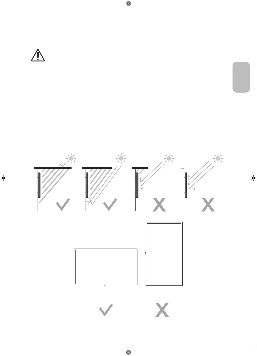 • L'écran du téléviseur ne doit pas être directement exposé aux rayons du soleil,