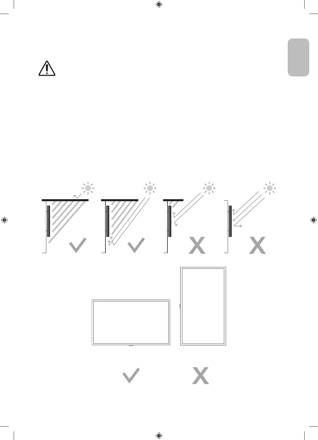 – Continuous exposure to direct sunlight may cause damage to the TV screen.