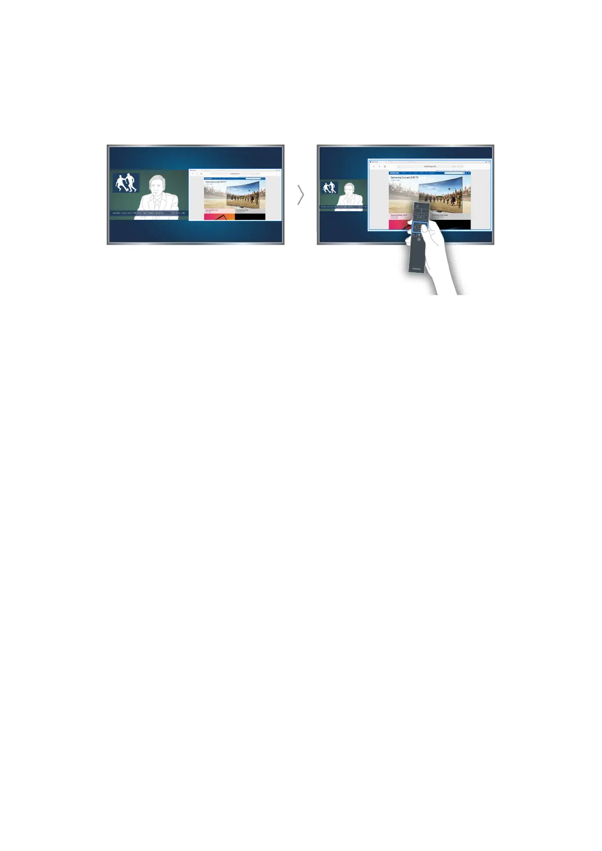 You can surf the web or run an app while viewing the TV. You can change the size of each screen by