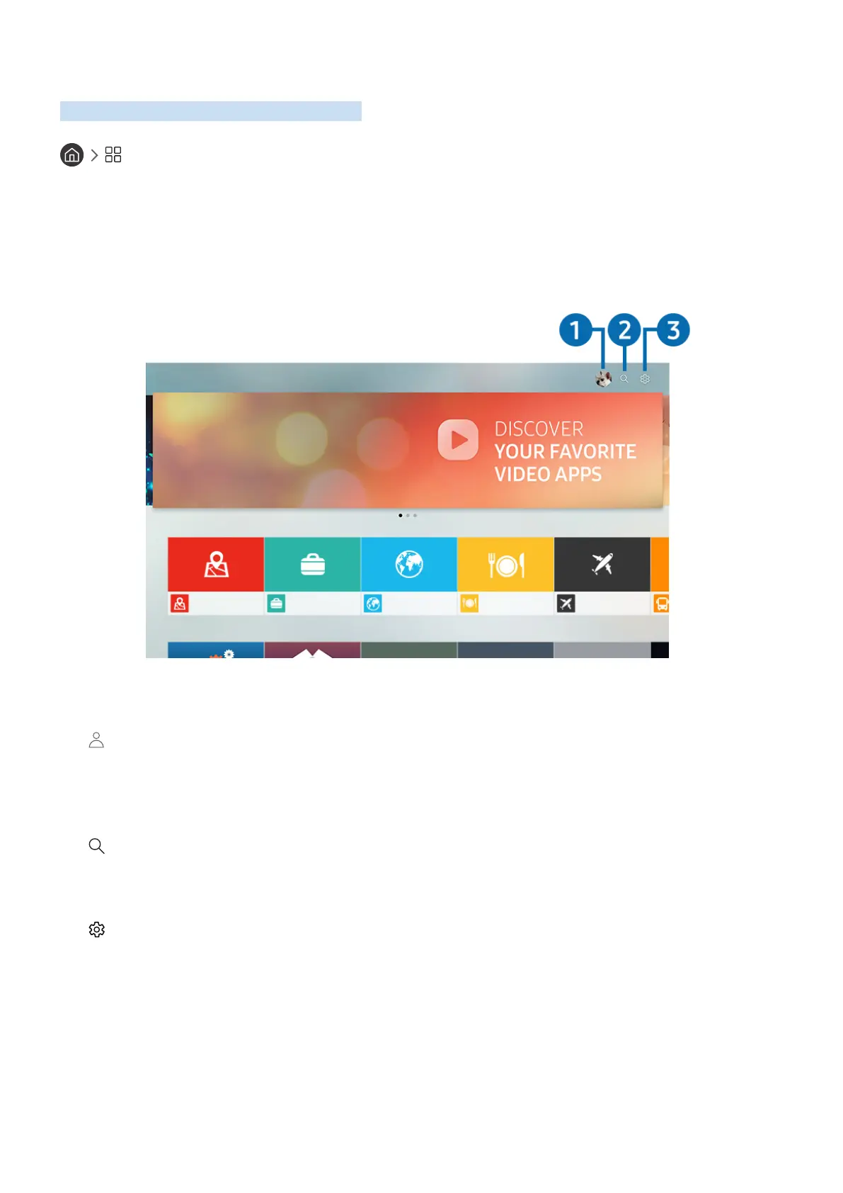 " When Smart Hub is launched for the first time, the default apps are automatically installed. The default apps may differ