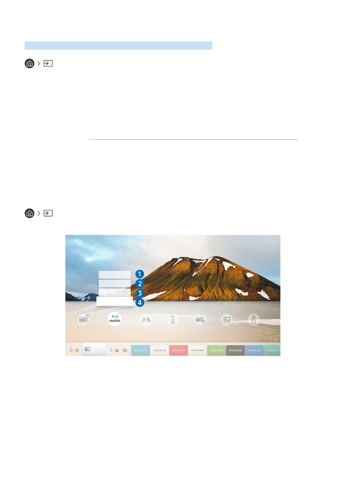 When you select a connected external device on the Source screen, the output of the selected device is displayed on