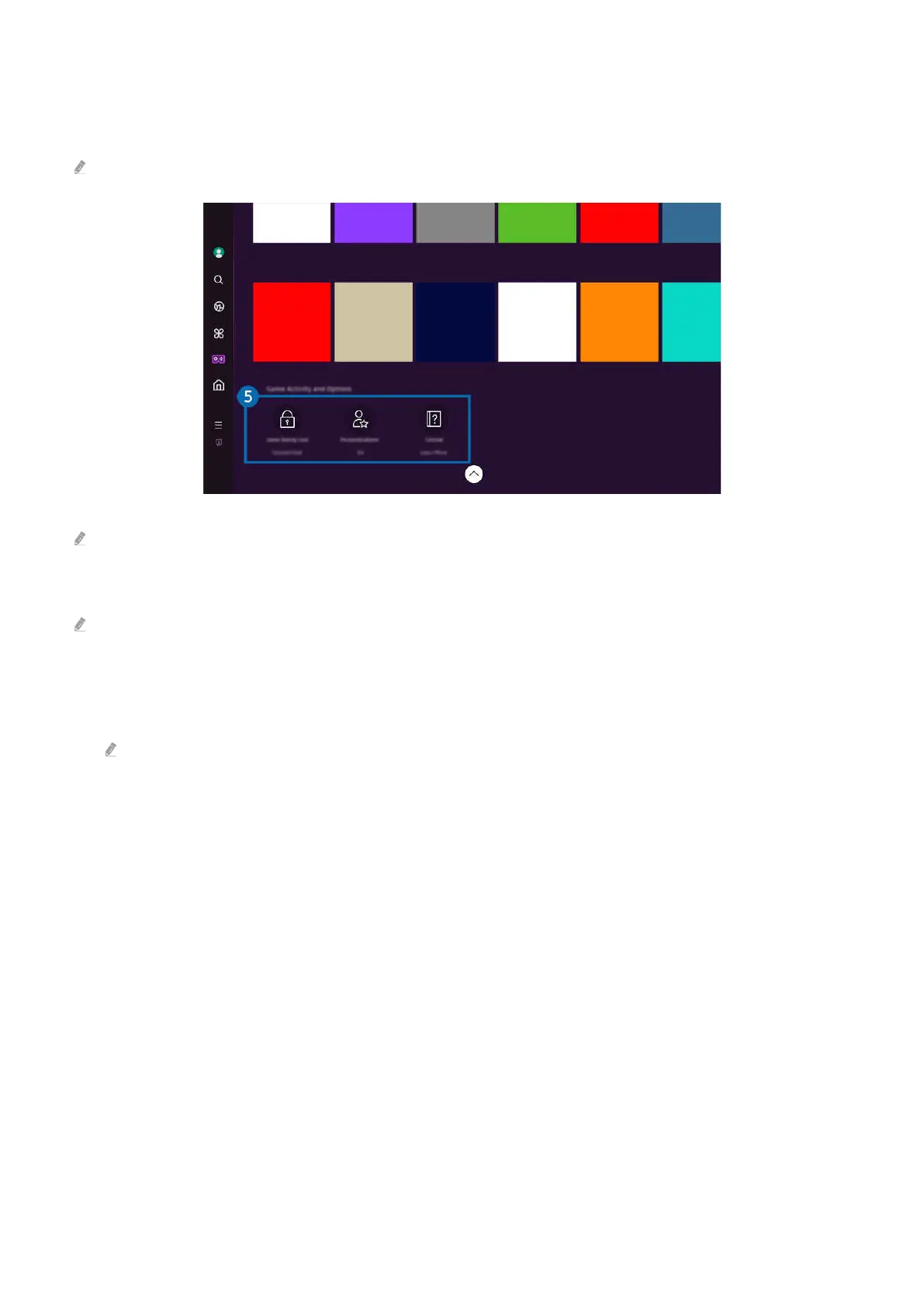 This menu is provided at the very bottom of the Samsung Gaming Hub screen. To congure Game Activity and Options,