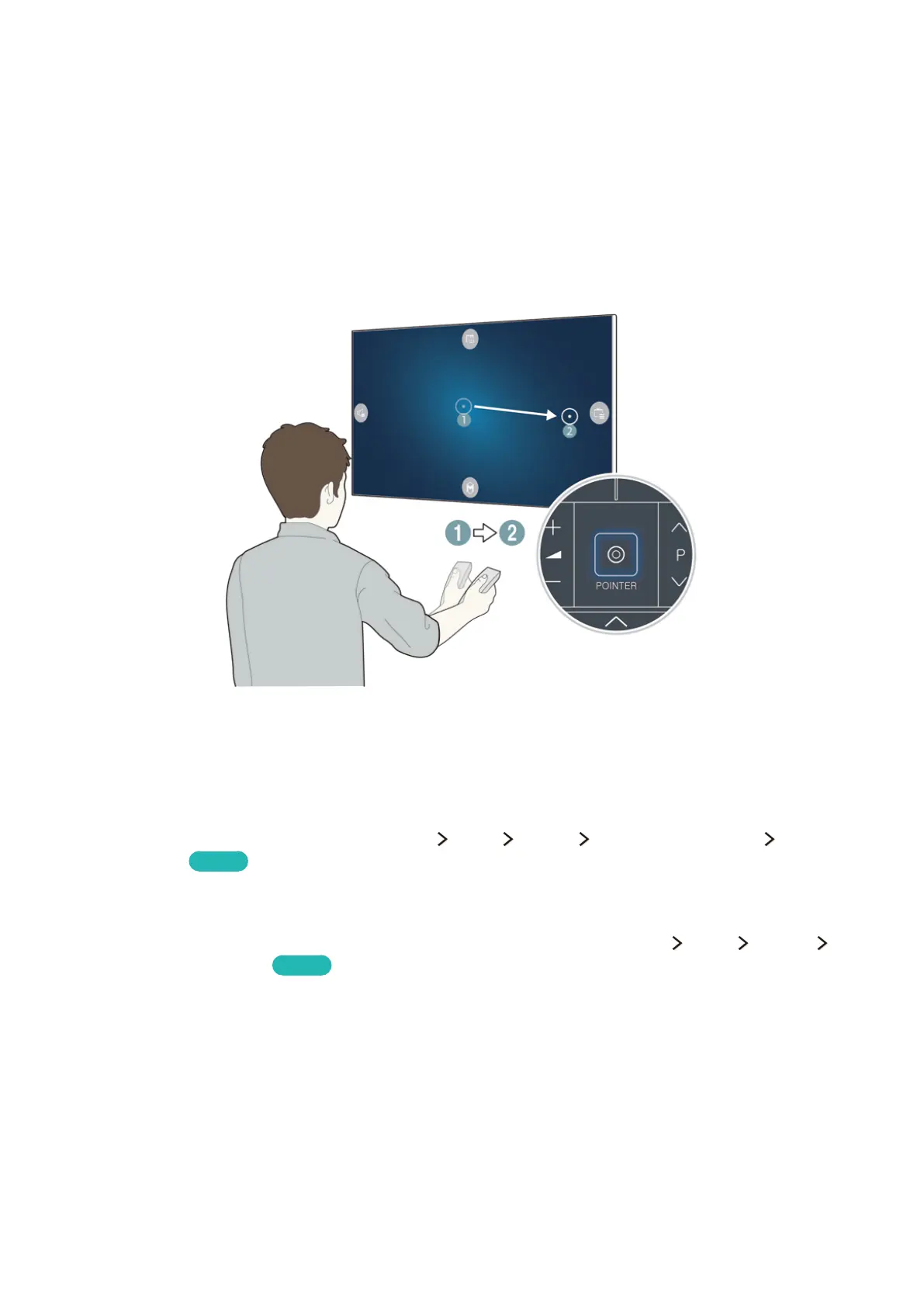 To use the POINTER button and the movement of the Samsung Smart Control to operate your TV, Voice