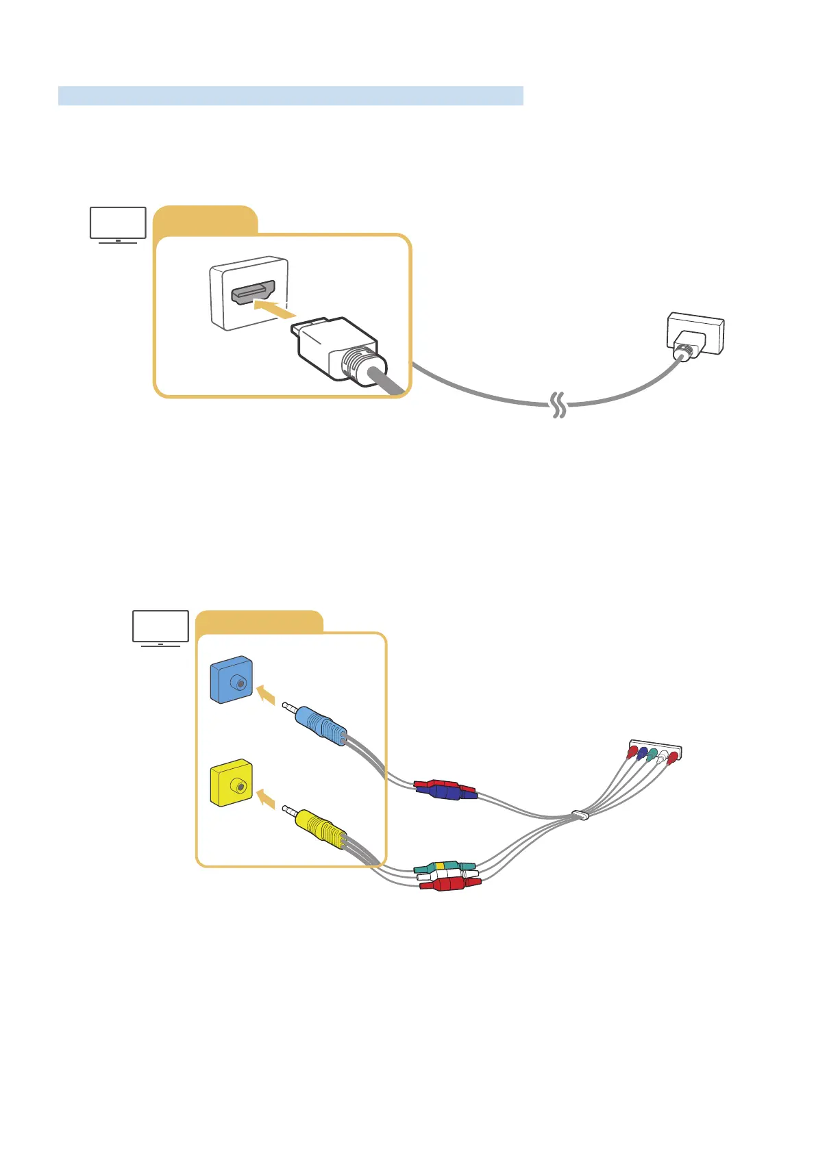 To use component equipment, connect both a component cable (blue) and an AV cable (yellow).