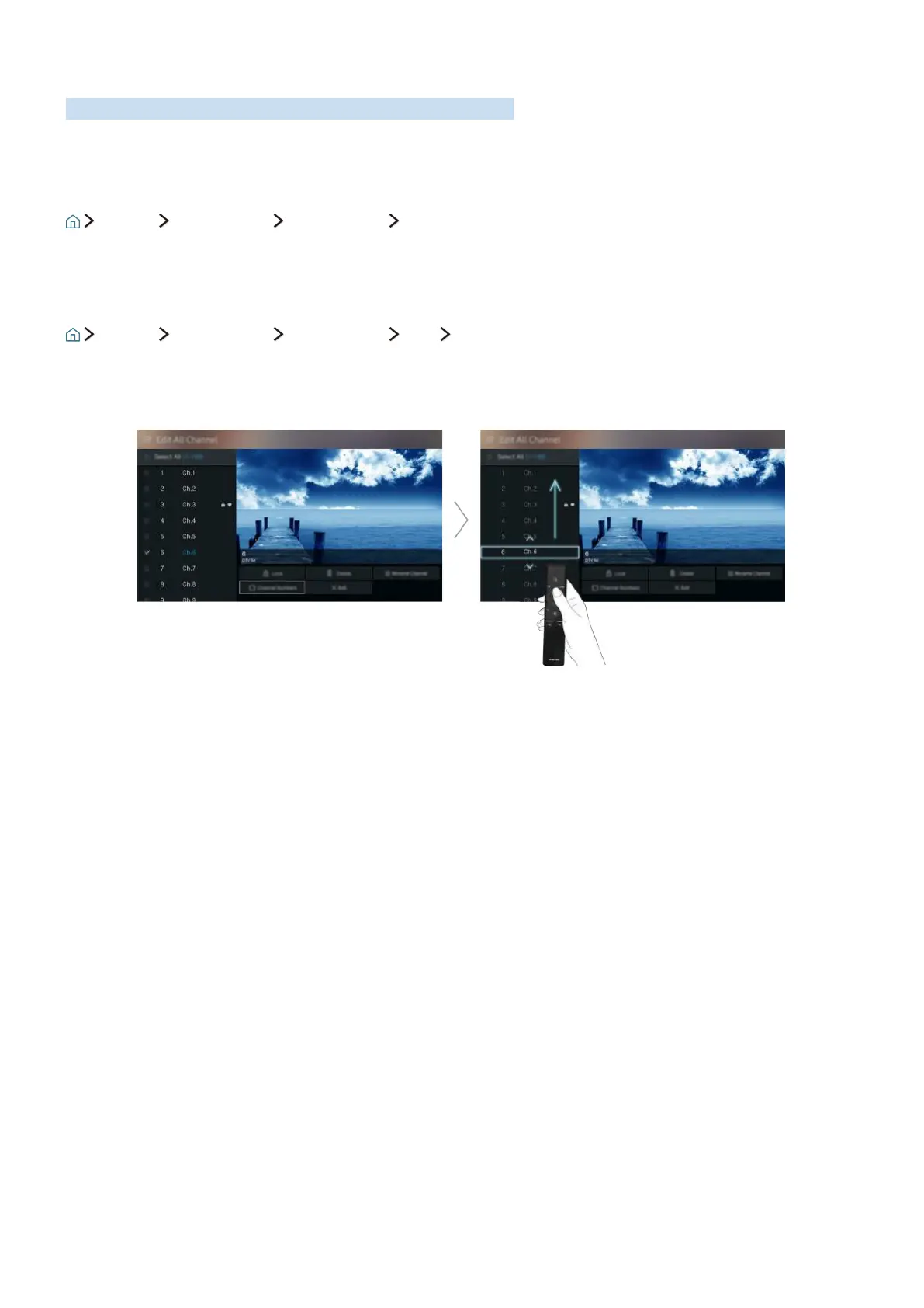 You can rearrange the order of channels or delete channels. To change the order of a channel, select it and
