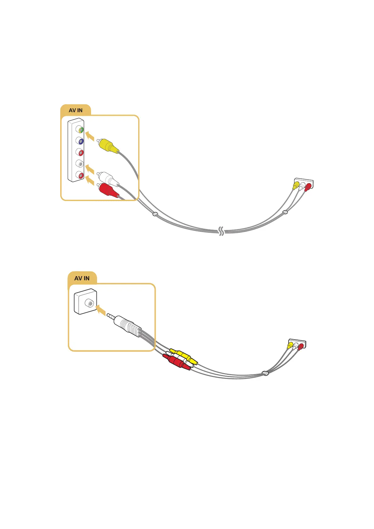 Connect the AV cable to the AV input connectors of the TV and the AV output connectors of the device