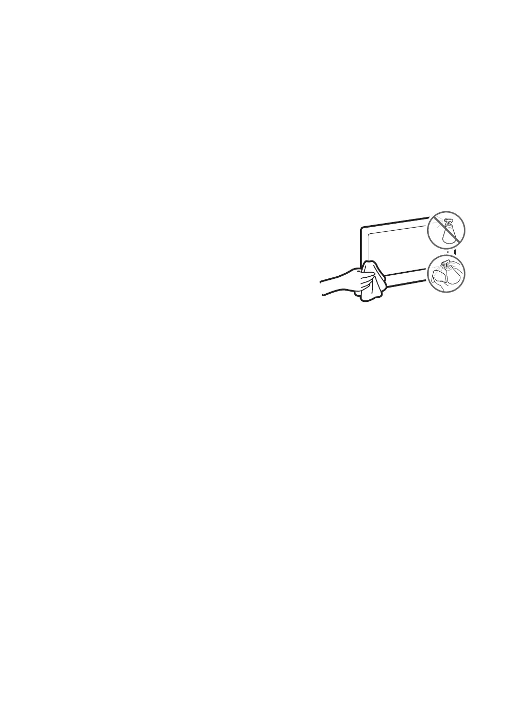 • Do not spray water or any liquid directly onto the TV. Any liquid that