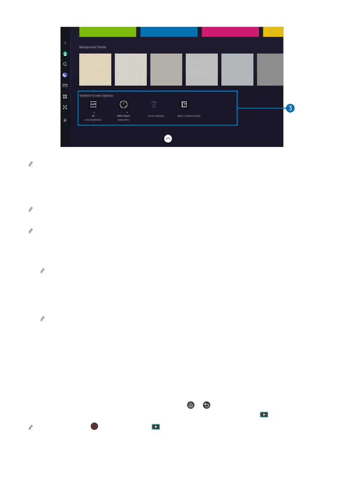 To access the TV screen from Ambient mode, press either the or button to redirect to the Ambient mode