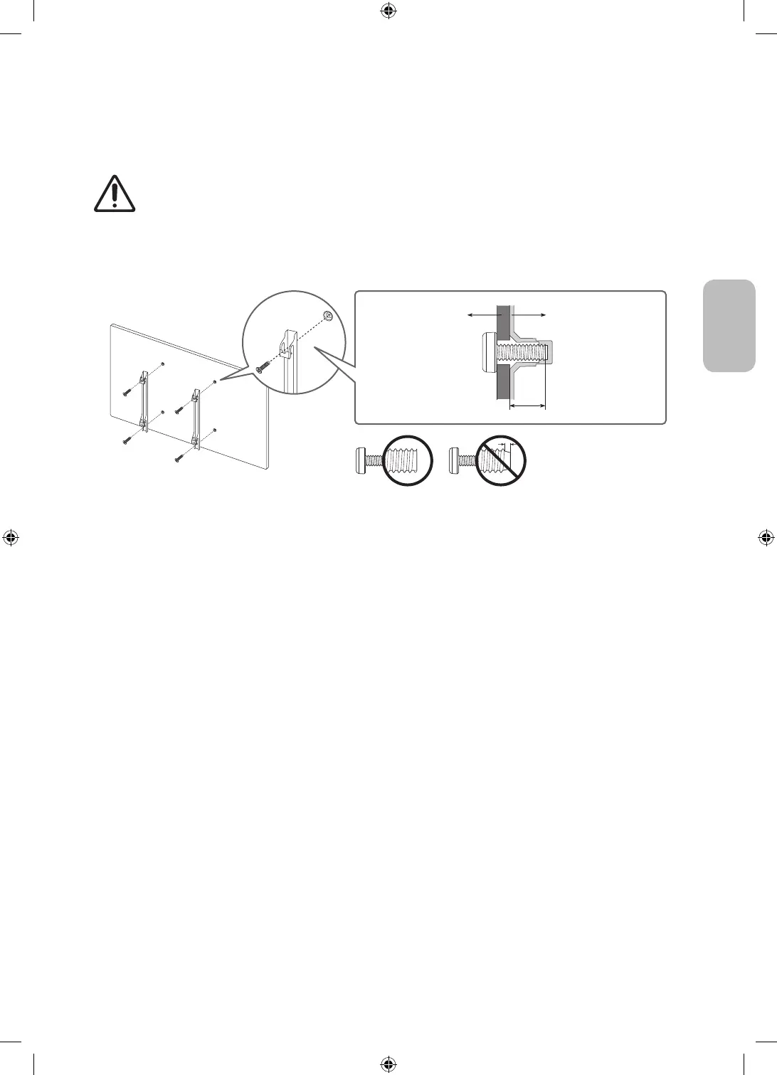 • Wenn Sie die Wandhalterung eines Drittanbieters montieren, müssen Sie beachten, dass die Länge der
