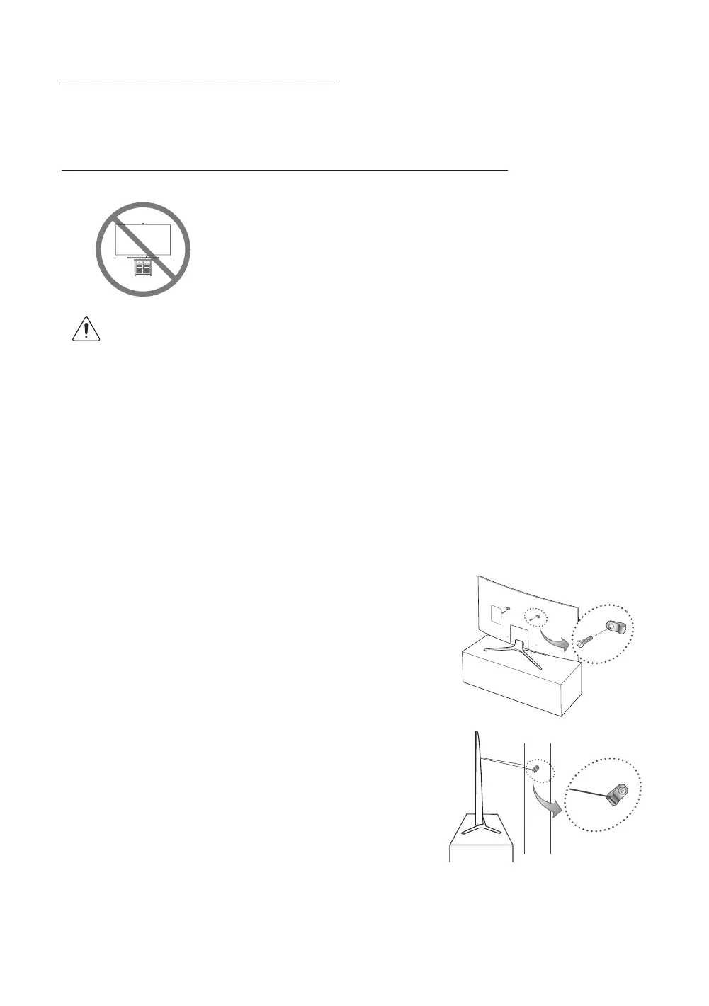 Ne pas placer le téléviseur sur des meubles hauts (armoires, bibliothèques, etc.) sans ancrer le meuble et le