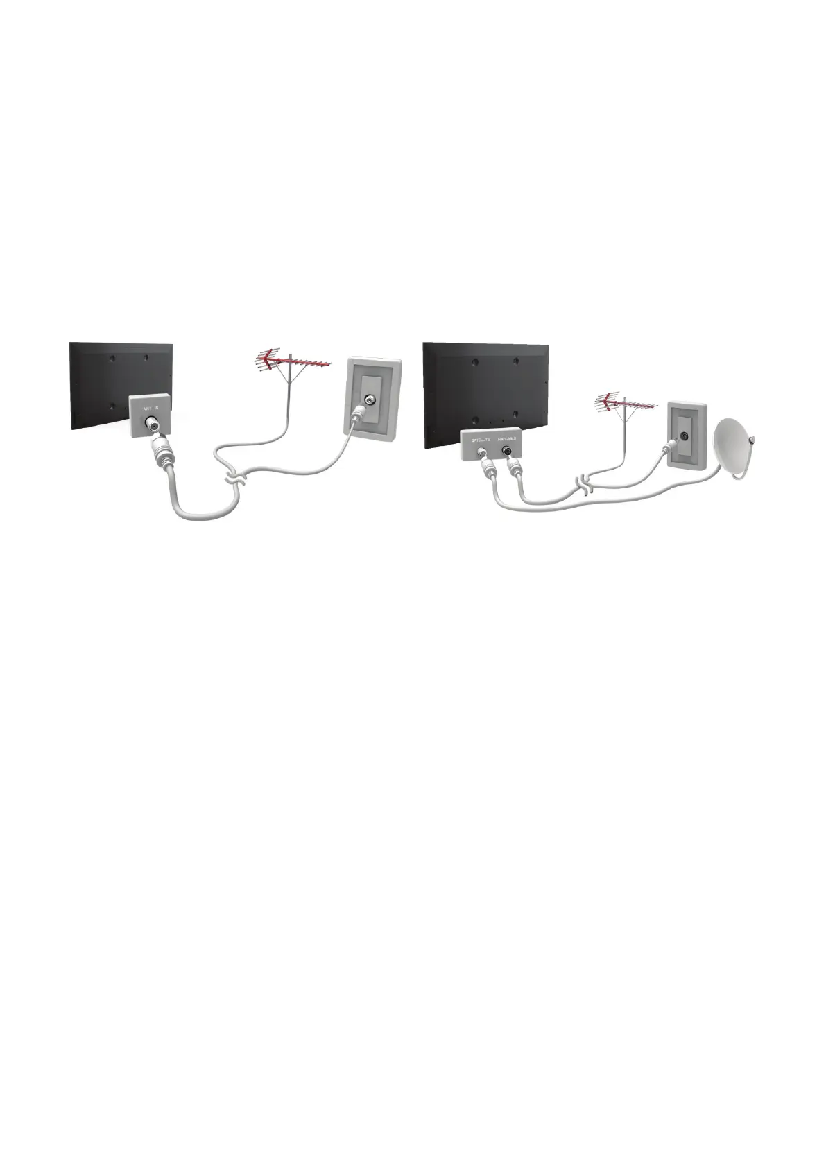 Connect the correct aerial cable according to your viewing environment to the TV's aerial connector, as