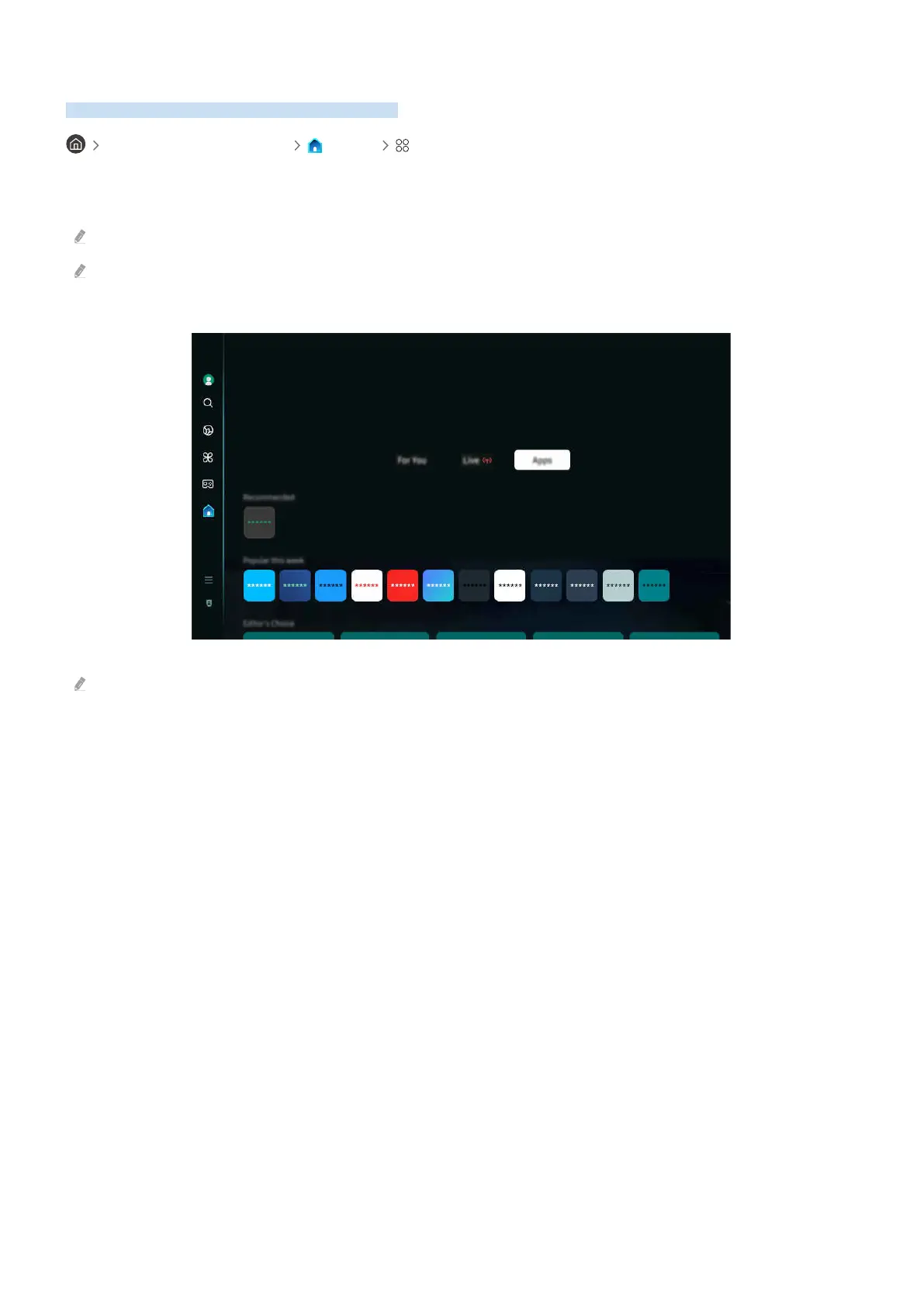 When Smart Hub is launched for the rst time, the default apps are automatically installed. The default apps may differ