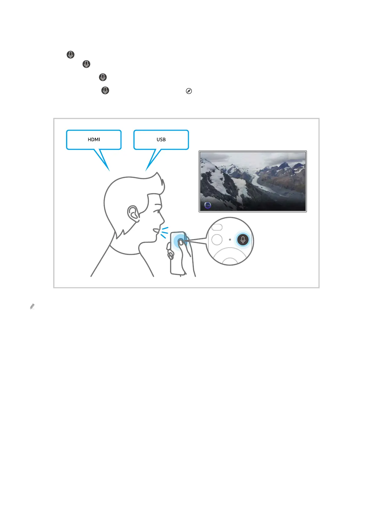 Houd de toets op uw Samsung Smart-afstandsbediening ingedrukt, spreek in het Engels een opdracht in en laat