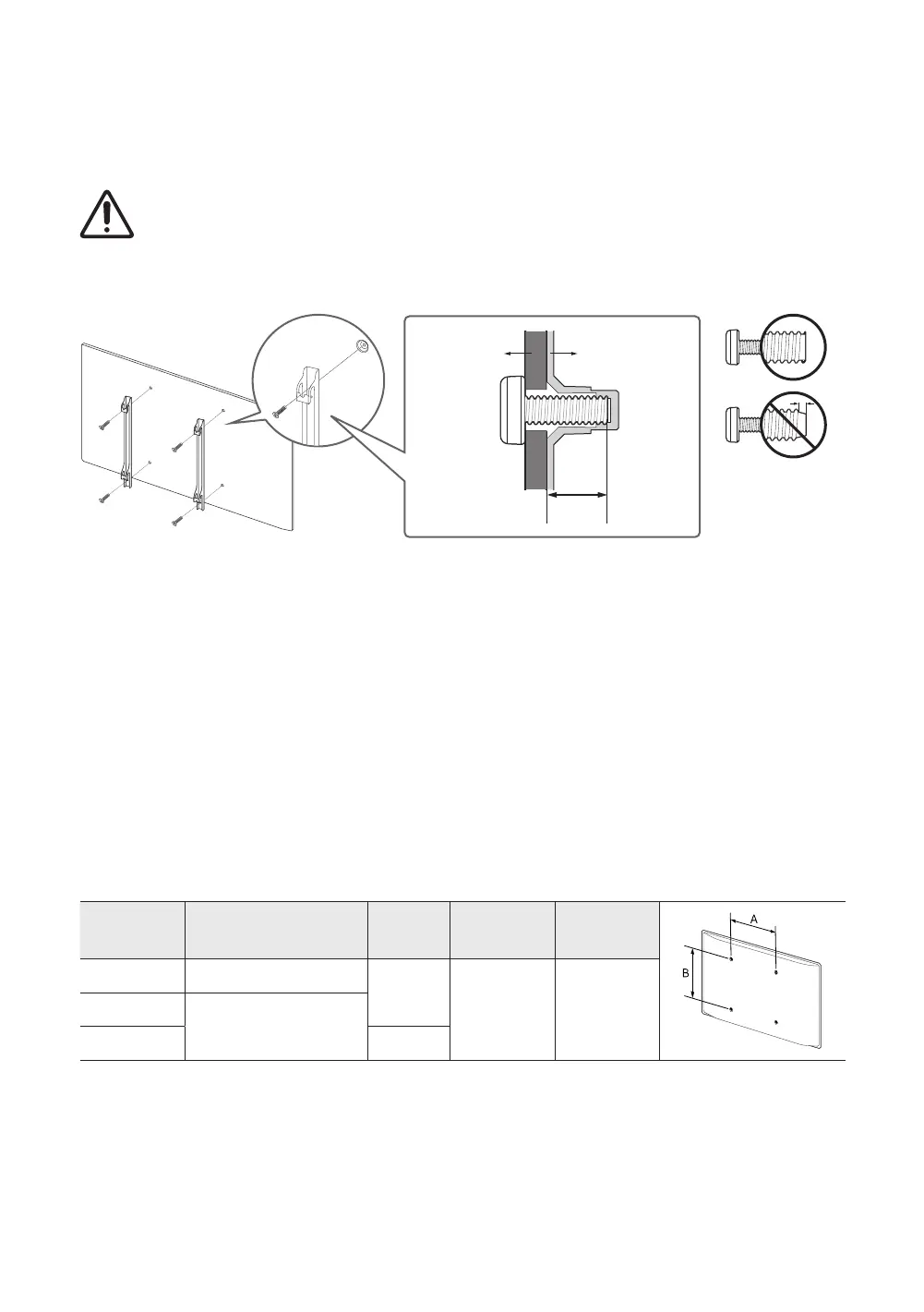 • If you are installing a third-party wall mount, note that the length of the screws you can use to attach the TV to