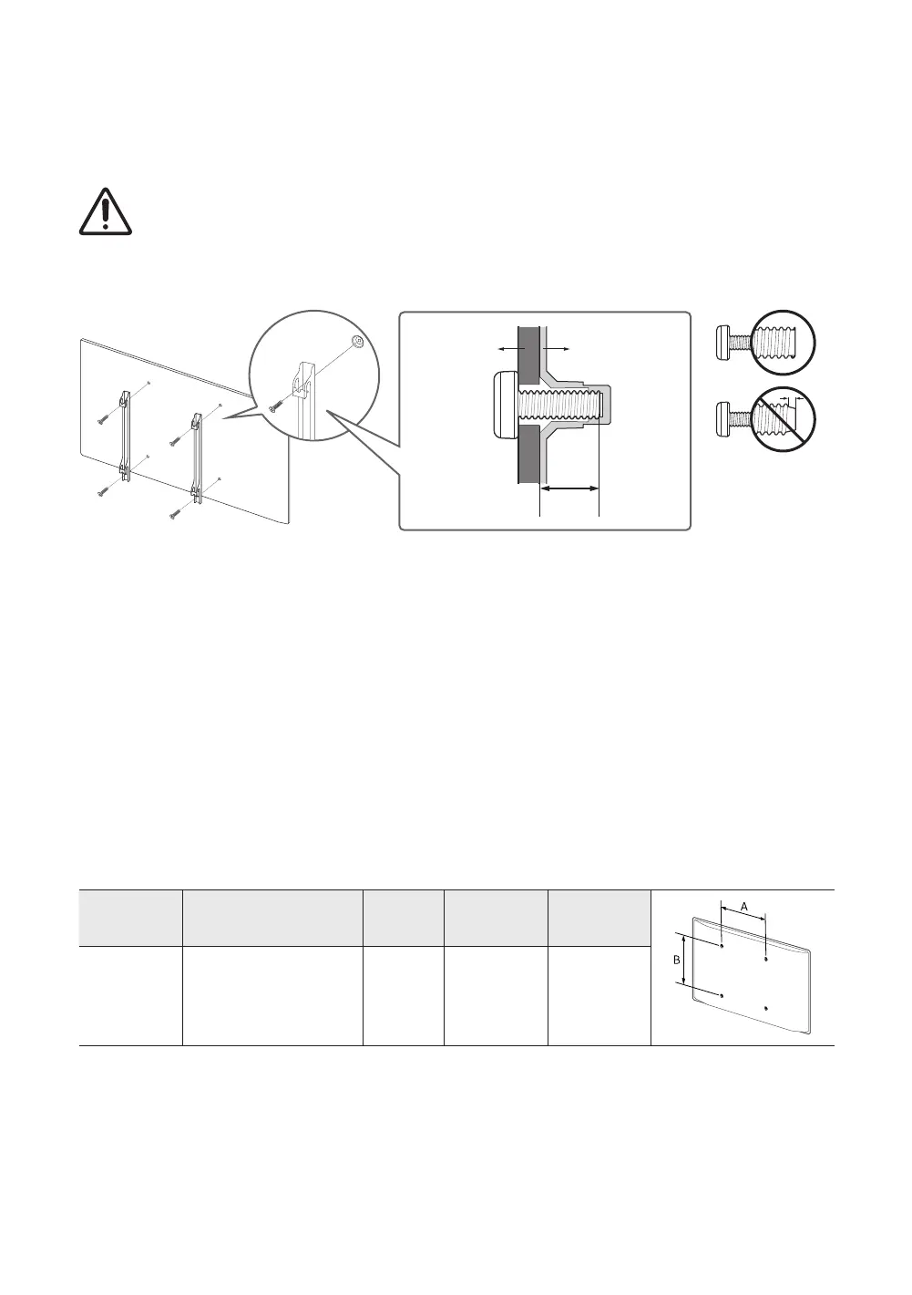 • If you are installing a third-party wall mount, note that the length of the screws you can use to attach the TV to