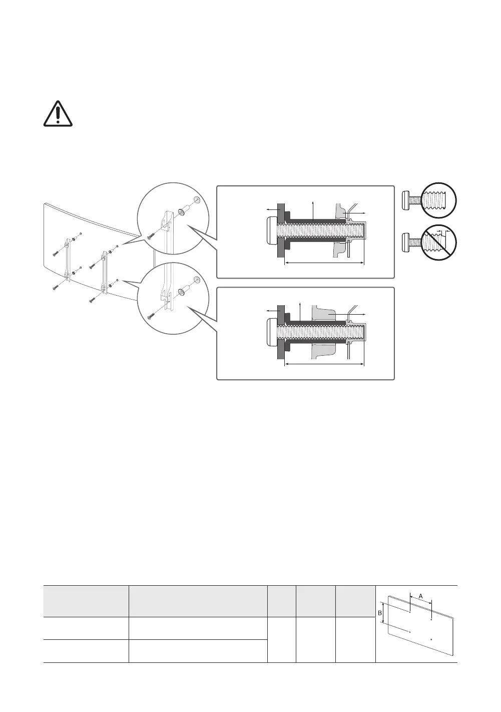 • Si instala un soporte de pared de terceros, tenga en cuenta que la longitud de los tornillos que puede usar