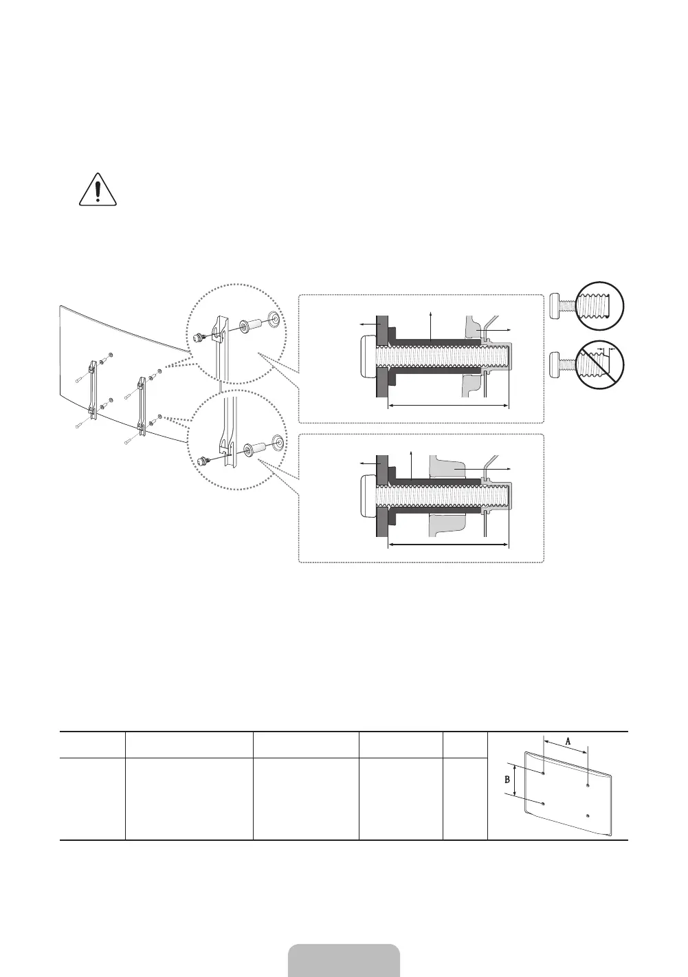 If you are installing a third-party wall mount, note that the length of the screws you can use to attach the TV to the