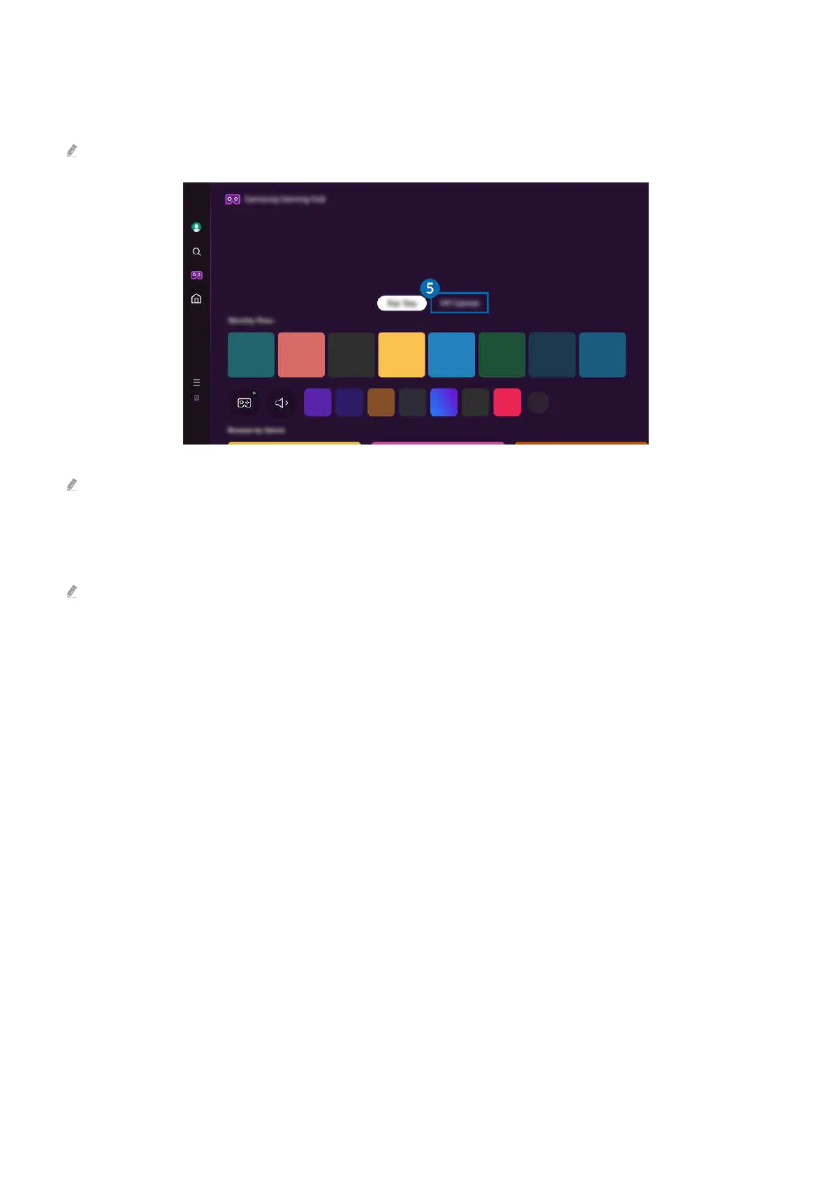 Purchase games or subscribe to service offered by the Samsung Gaming Hub. Select a game to view the game