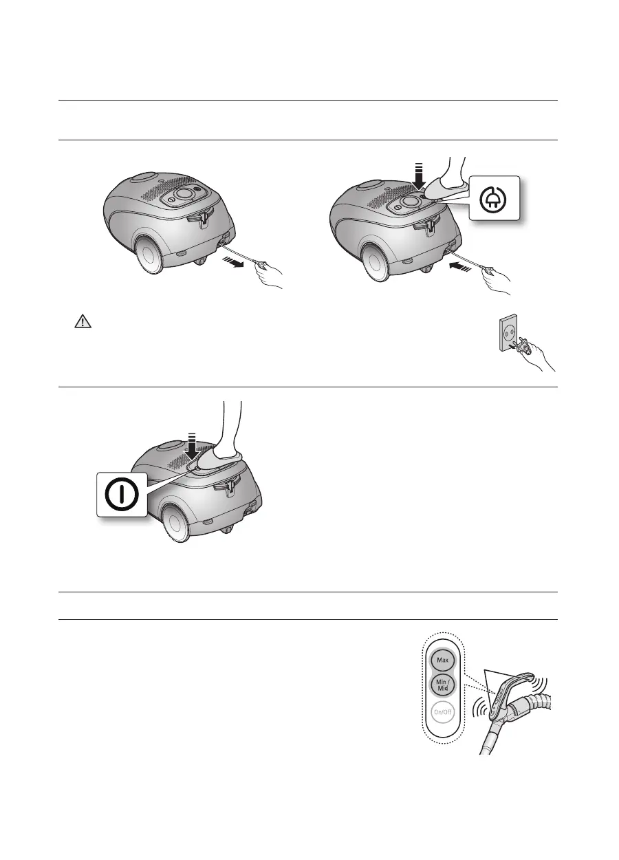 1. Putekļu sūcēja ieslïgšana un izslēgšana Nospiediet ON/OFF pogu,