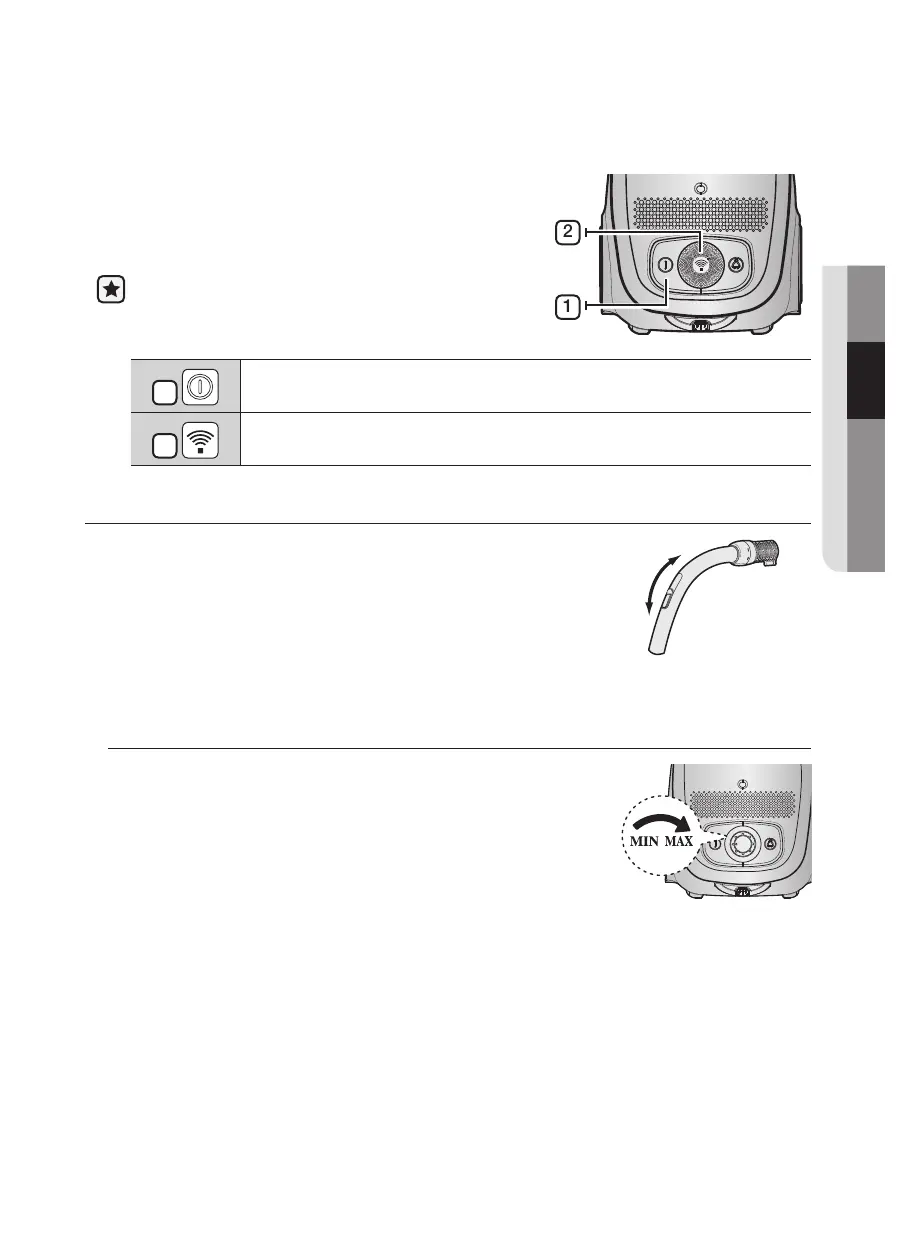 Poga ON/OFF ieslēdz un izslēdz putekļu sūcēju.