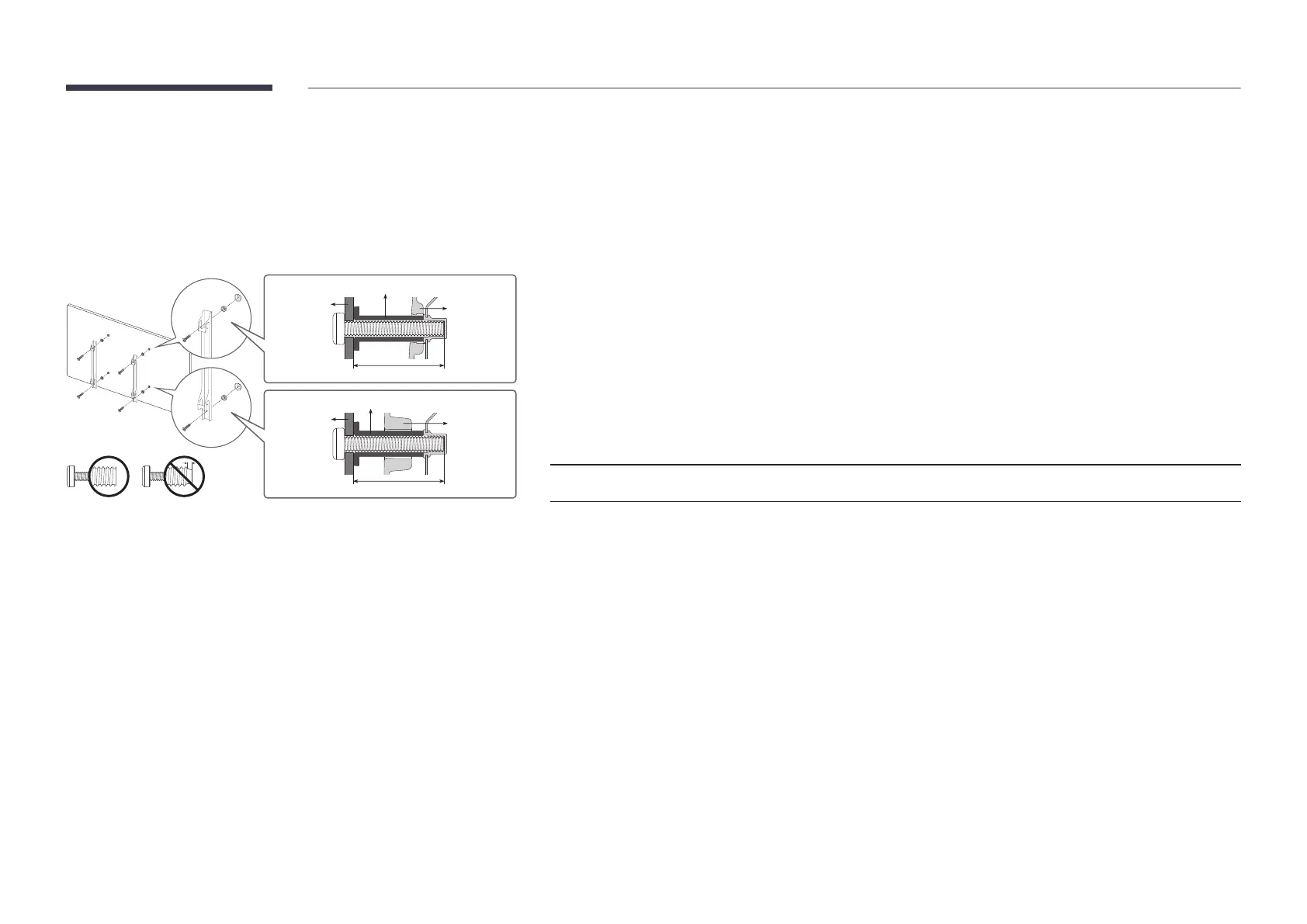 specifications. Screws that are too long may cause damage to the inside of the product.