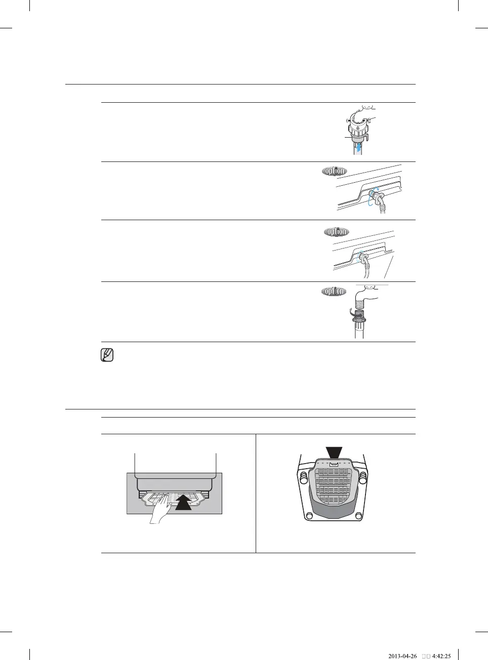 • If the water tap is a screw type, assemble a water supply