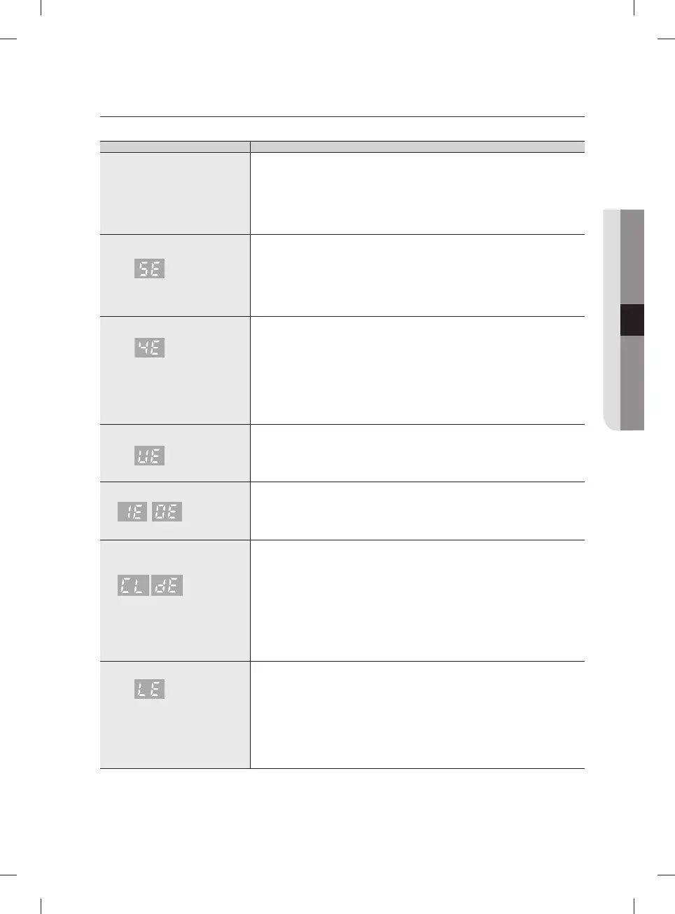 Water leakage error • Check if the end of the drain hose is placed on the fl oor. (The hose