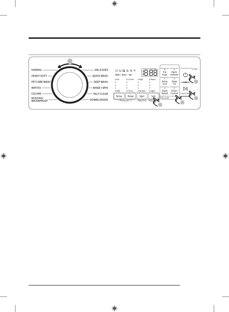 3. Change the cycle settings (Temp., Rinse, Spin, and Soil) as necessary.