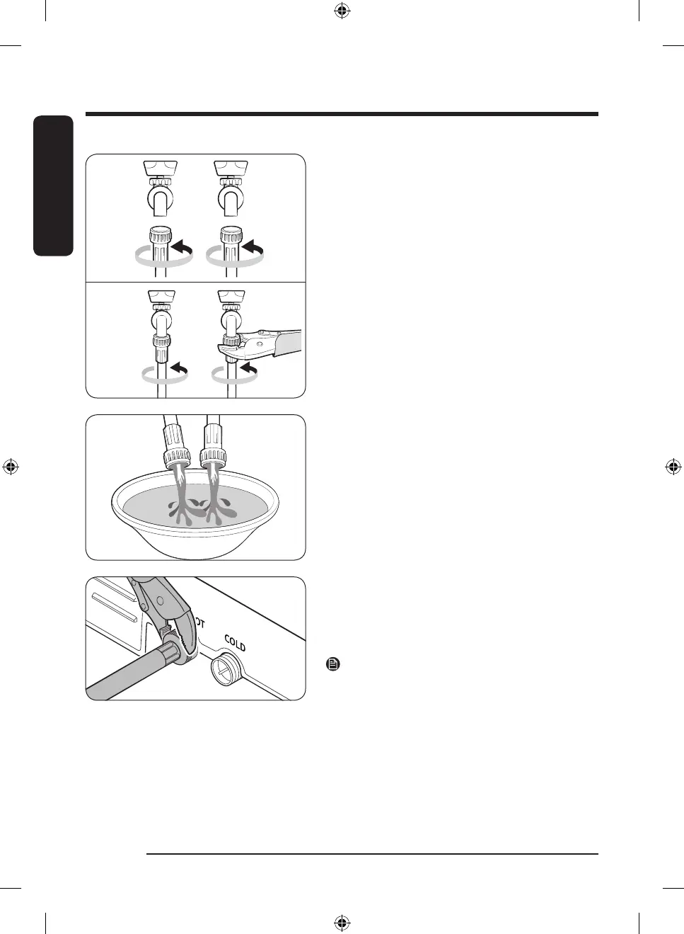 taps, and then hand tighten the water hose fittings
