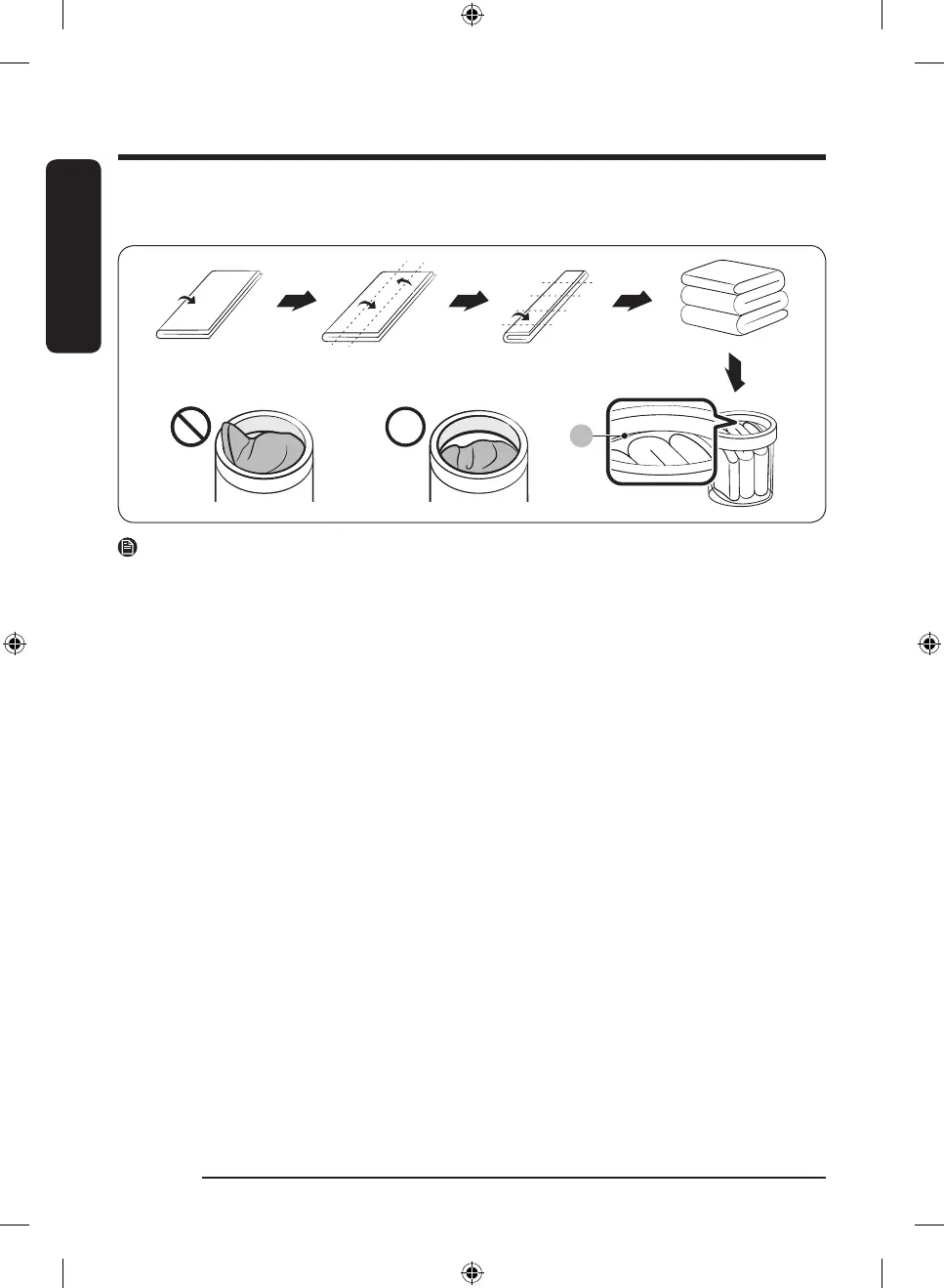 Fold the blanket as shown, and then put it below the plastic ring (A) at the top of the tub.