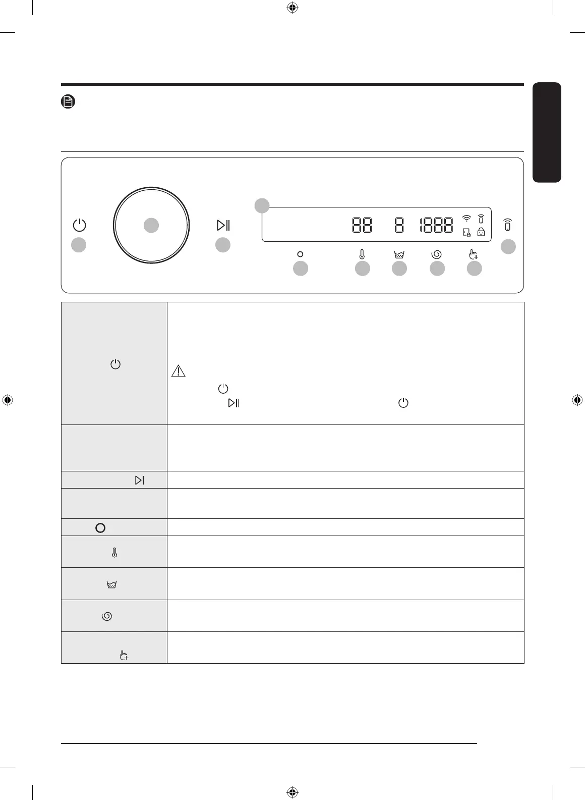 Tap to turn the washing machine on or off.